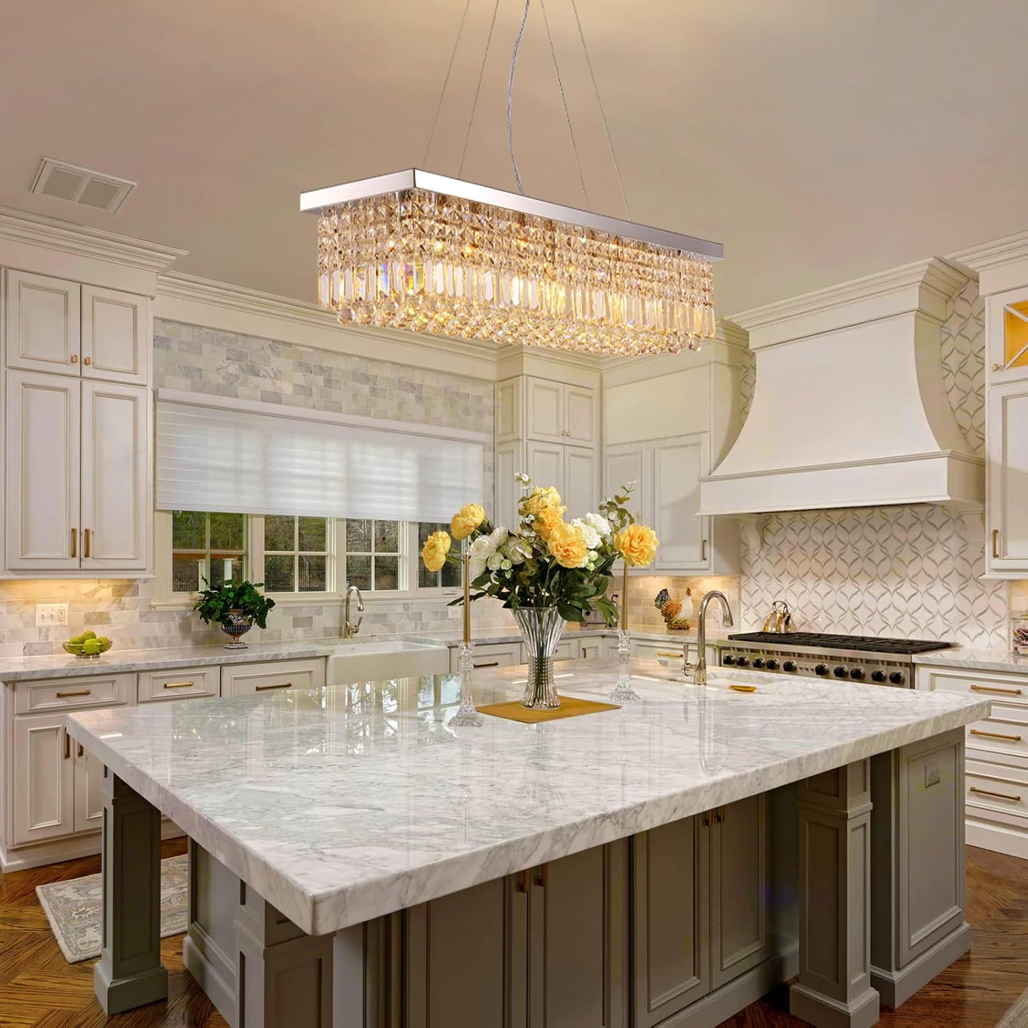 - 8-Lights Dining Room Chandelier: The kitchen chandelier light fixtures fits 8xE12 bulbs (not included). It can also be dimmed when you use dimmable bulbs and compatible dimming switches, giving you the most comfortable illumination. This rectangle chandelier is an art decoration for your dining room, kitchen island, and living room.