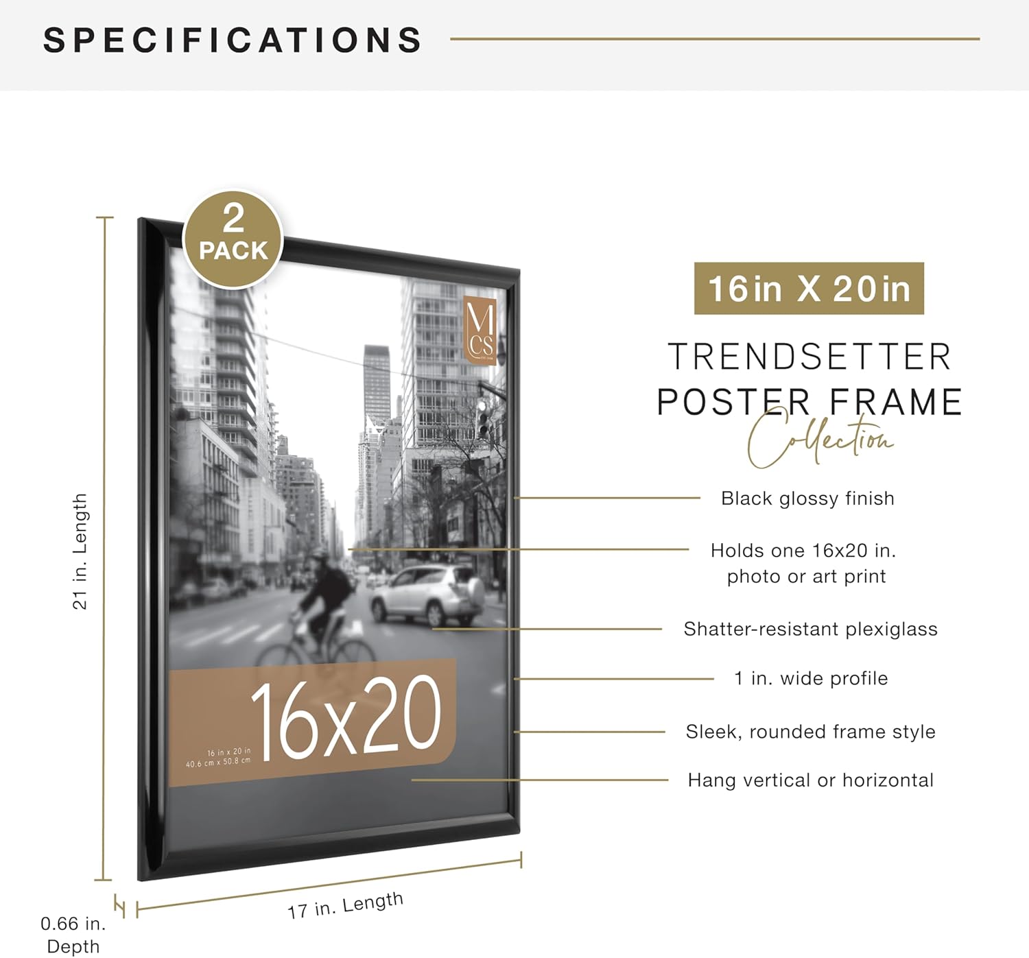 - VERSATILE DECOR: With a passion for design, trend, and functionality, MCS delivers best-in-class products, like our modern picture frames, that help make your house a home; Showcase posters, photographs, or puzzles with the MCS Trendsetter Frame collection; With multiple sizes and finishes to choose from, you can outfit your living room, bedroom, or home office with sleek, contemporary wall decor