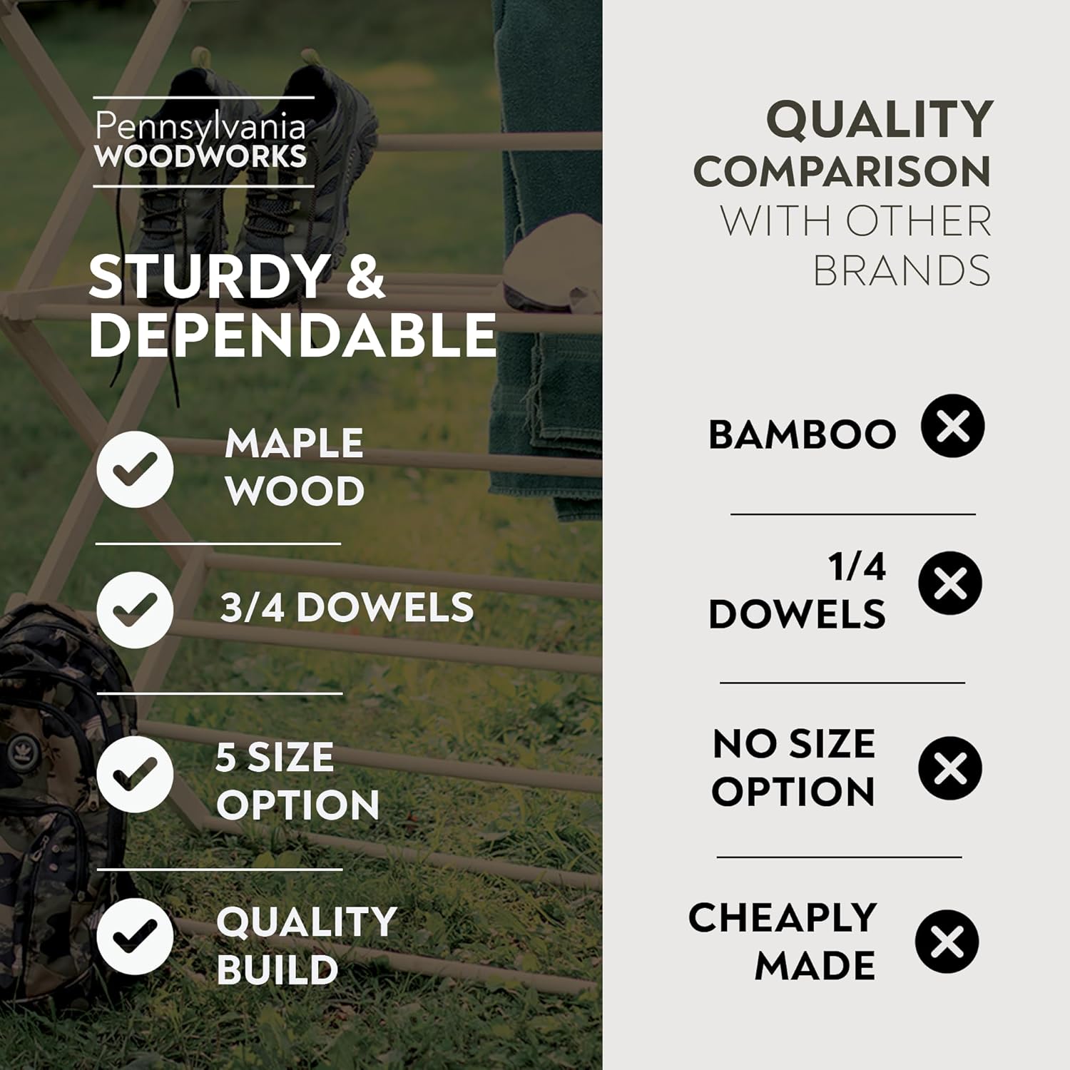 Pennsylvania Woodworks Clothes Drying Rack: Solid Maple Hard Wood Laundry Rack for Sweaters, Blouses, Lingerie & More, Durable Folding Drying Rack, Made in USA, No Assembly Needed, Large