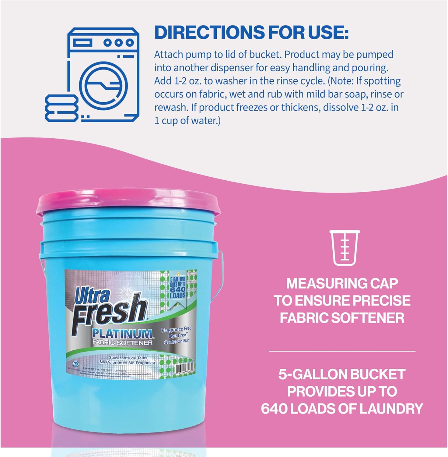 Ultra Fresh 5 Gallon Platinum Fabric Softener for All Machine Types, Liquid Laundry Softener, Up to 640 Loads, Fragrance & Dye Free