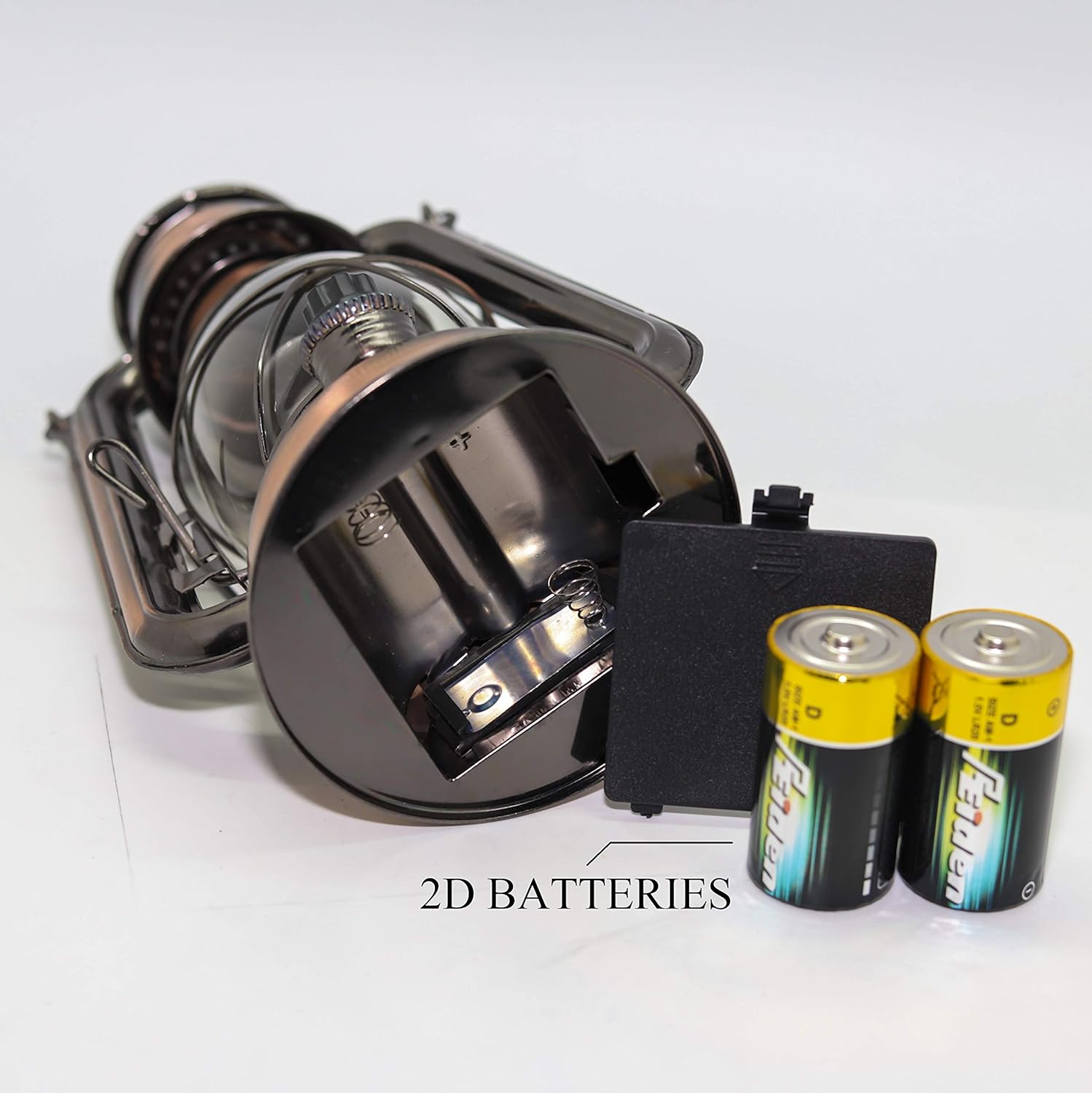 - BATTERY OPERATED: Each vintage lanterns battery powered led by 2 D batteries (not included), the battery life varies based on usage. Without wiring limited.This lantern is great useful for camping when you make your way around the campsite and your tent easily in the dark. Please note when in extreme weather conditions, the lamp should be placed indoors to prevent glass from breaking.