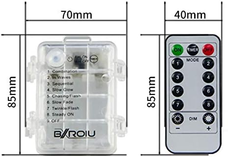 - Lighting 8 modals: fairy lights battery with remote control of 8 modals with different light types: wave-type change, continuous change, change of flicker, single light gets brighter and darker, slow-flash change, dreamlike change, burst flash, always bright.