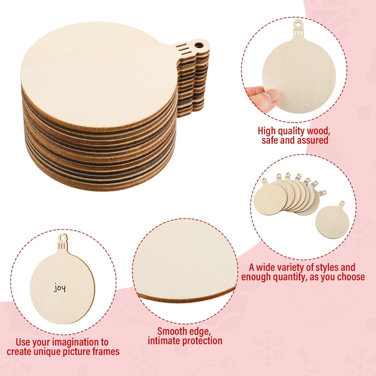 - Instruction: Christmas wooden ornaments equipped with hanging cords, you can hang it on your Christmas trees, torches, doors, windows, cubical wall, ceiling even your garden fences, add romantic and festival atmosphere, also it can be applied as card for gift sending and craft working