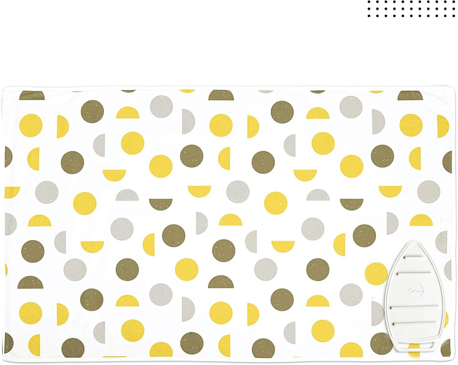 Encasa XO Ironing Mat/Pad (Large 48"x28") with 3mm Padding & Silicone Iron Rest for Steam Pressing on Tabletop or Bed - Heat Resistant, Portable, Quilting & Travel Blanket - Yellow Moon