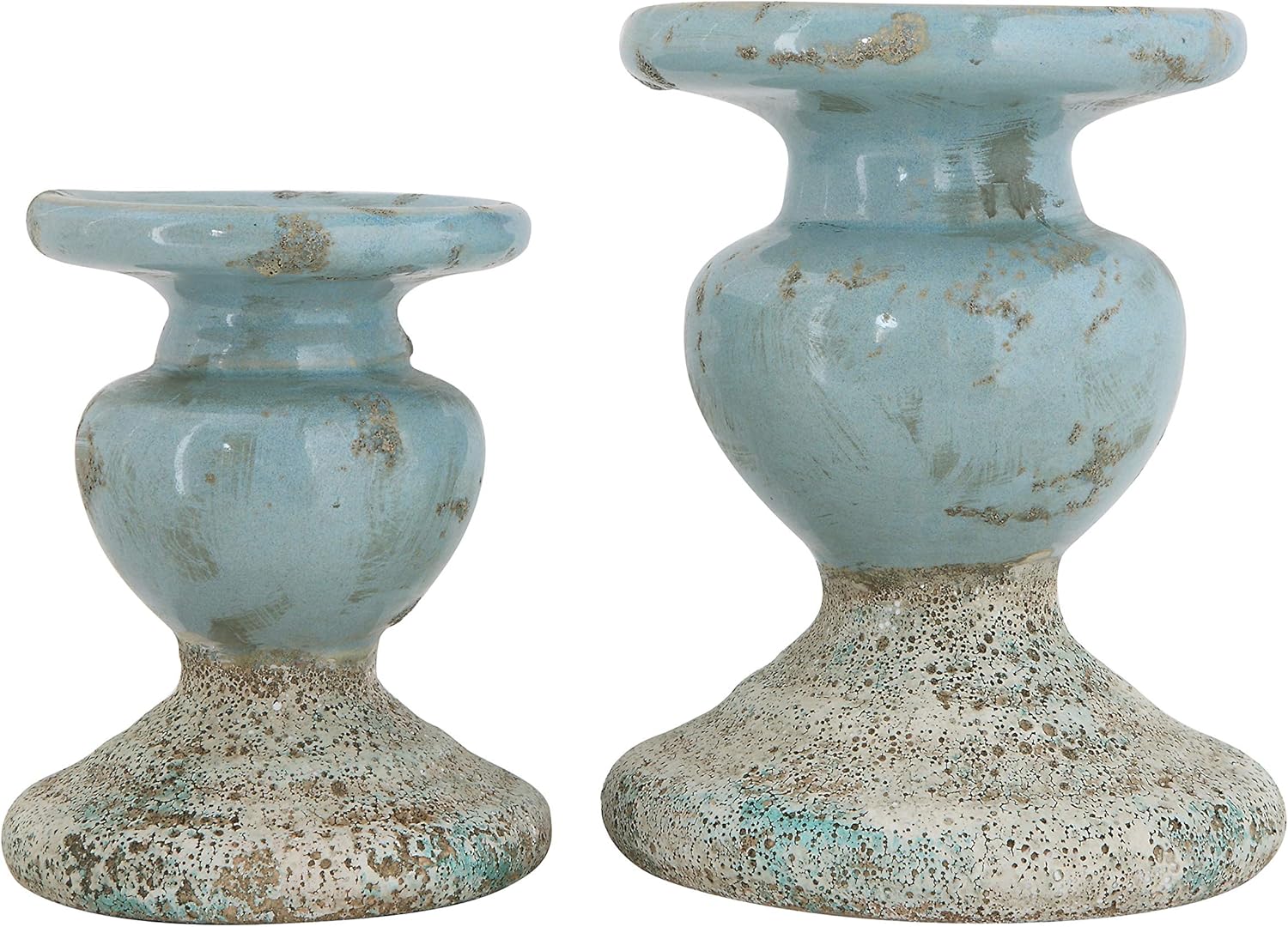 Creative Co-Op Small Distressed Blue Terracotta Pillar Candle Holder