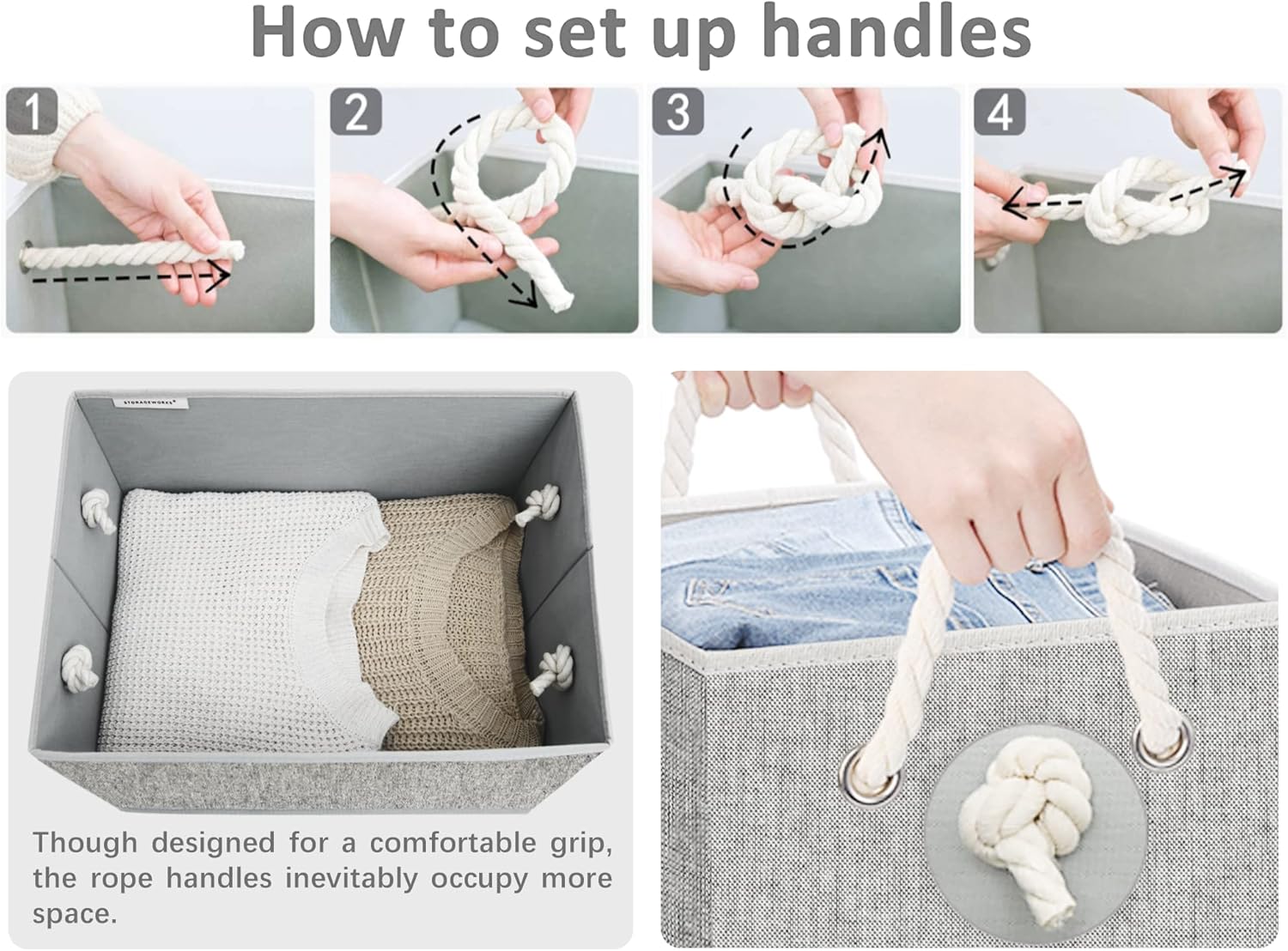 StorageWorks Storage Bins with Lids, Decorative Storage Boxes with Lid and Soft Rope Handles, Foldable Storage Baskets for Closet, Shelves, Stackable, Gray, Jumbo, 3-Pack