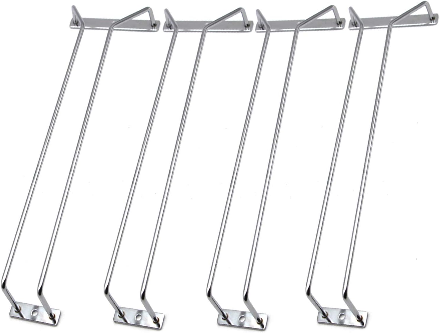 14-Inch Wine Glass Rack, Under Cabinet Wine Glass Holder Stainless Steel Chrome Finish Stemware Rack - Hanging Stemware Holder for Cabinet Kitchen Bar, Set of 4