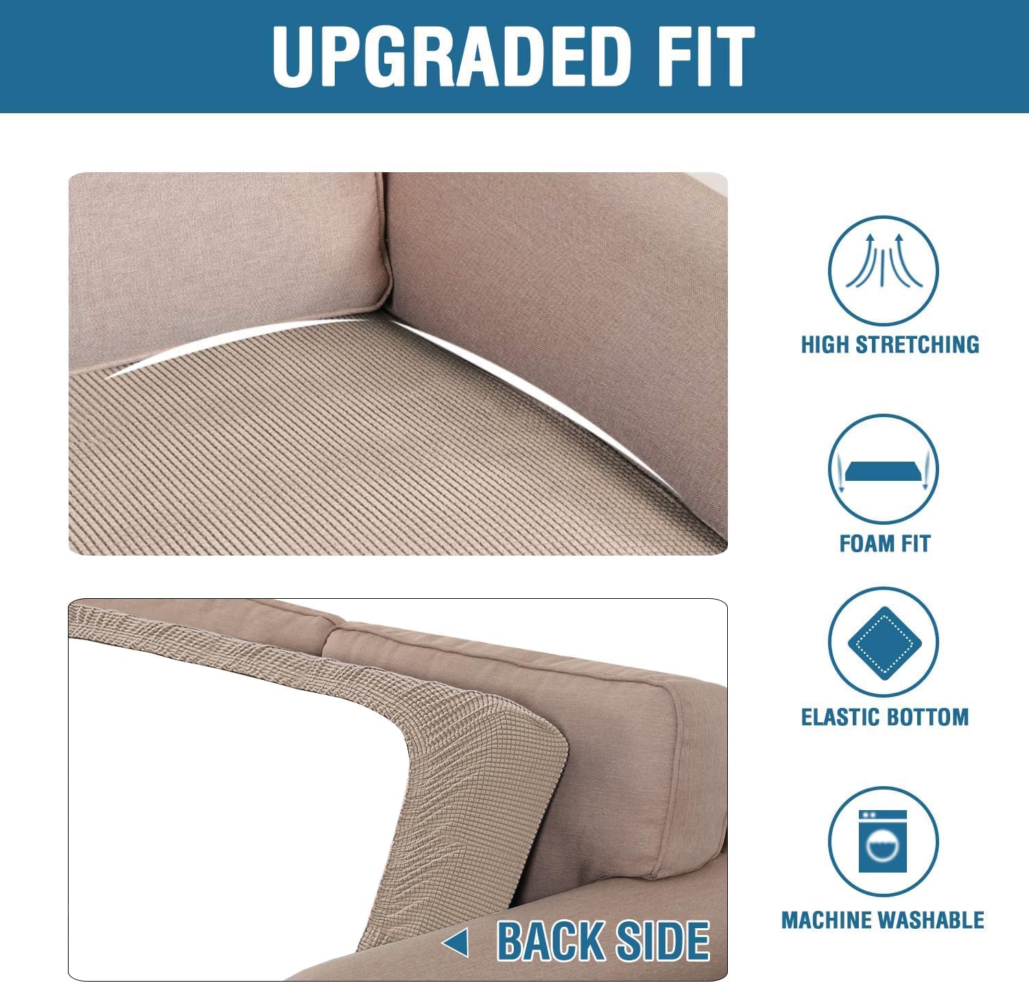 H.VERSAILTEX Super Stretch Individual Seat Cushion/Couch Slipcover Sets Thick Jacquard Textured Twill Fabric (3 Piece Sofa Covers, Sand)