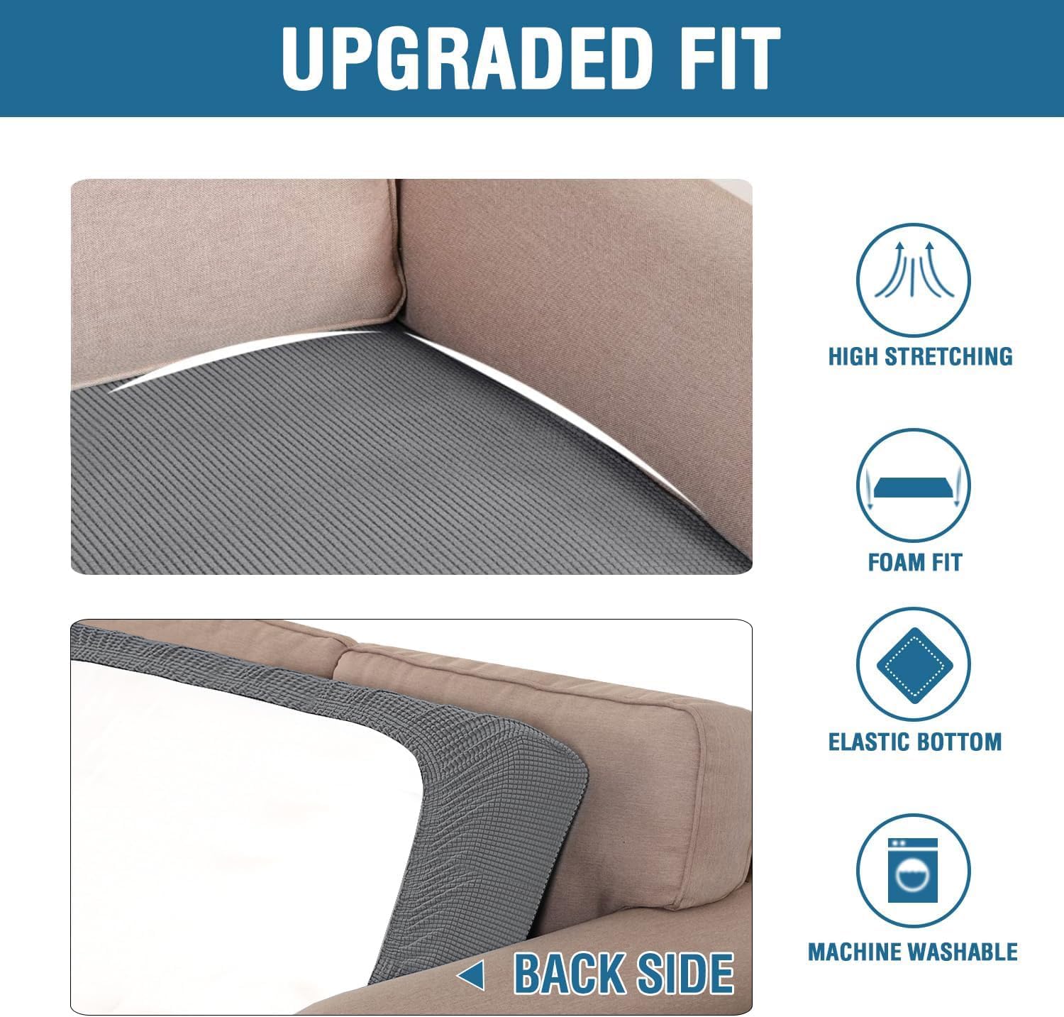 - GREAT FIT: Slipcover Set of 3. This innovated cushion slipcover is crafted from durable and soft high stretch knitted jacquard fabric. Sofa Seat Cover(fit total sitting area between 58.8-88.5 inches). Feature one-size-fits-most, kindly measure before ordering. Suitable for both T cushion and Box cushion styles