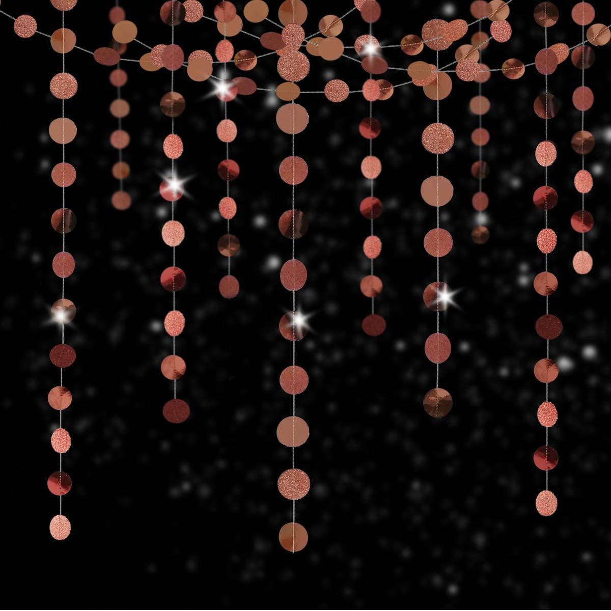 - 【High quality】Our rose gold paper circle dots garlands are of good quality. There are two different kinds materials of the circle dots, one is flash material and the other is mirror material, they are both double-sided glitter. The paper of our rose gold paper circle dots garlands is thick and durable, which is not easily damaged. Our garlands can be reused because of the good quality