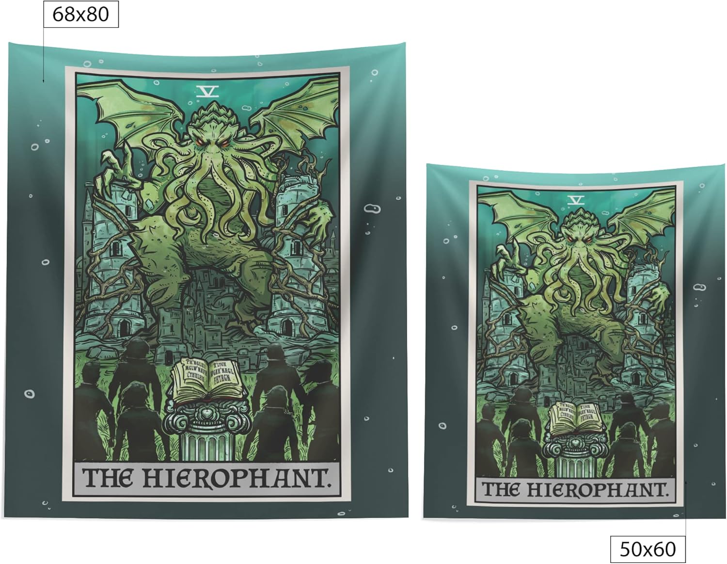 Cthulhu The Hierophant Tarot Card Tapestry Wall Hanging H.P. Lovecraft Horror Home Decor Halloween Wall Art (60" x 50")
