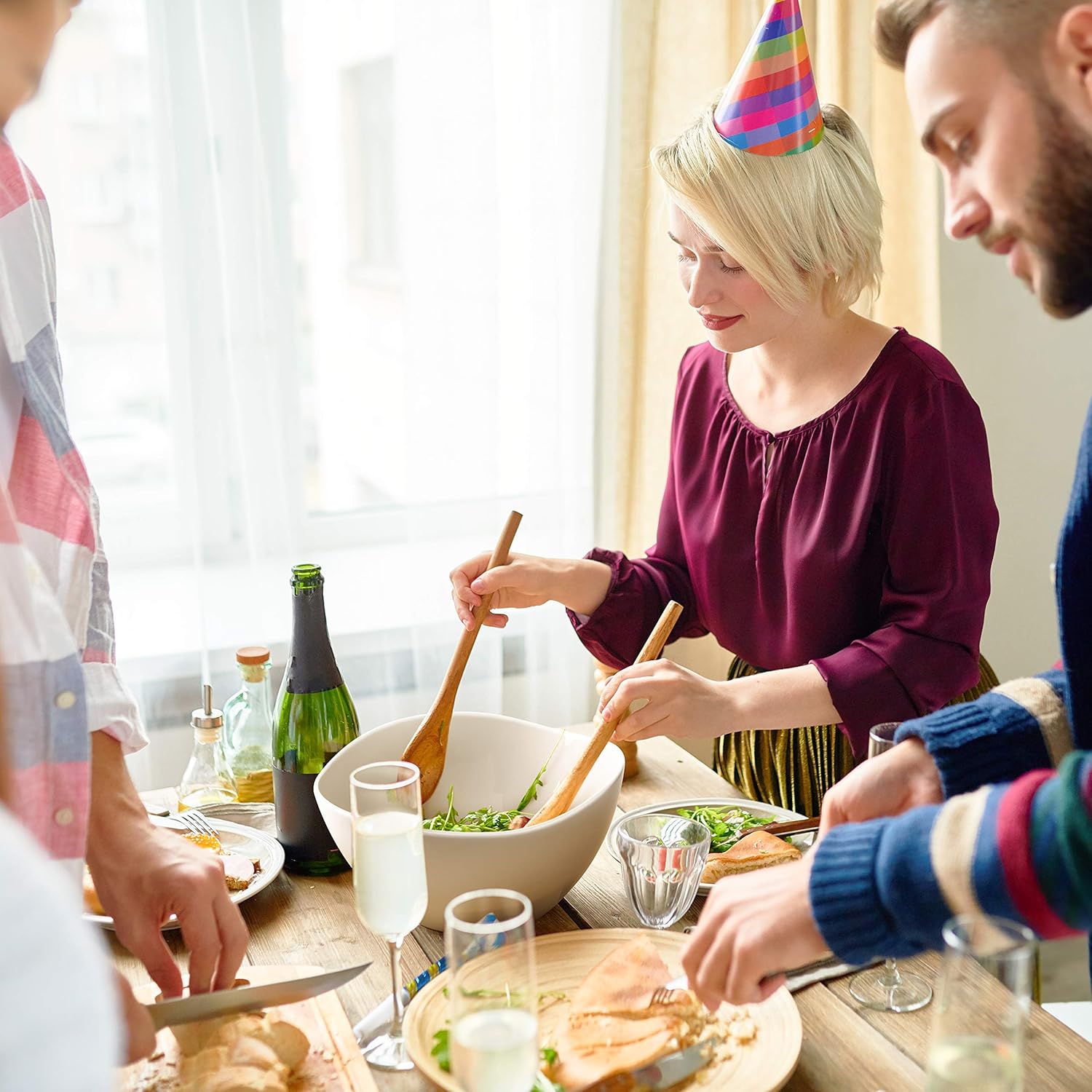 - Stackable and Space-saving: The salad serving bowls are sturdy enough and smooth. And they are stackable with other tableware for easy storage