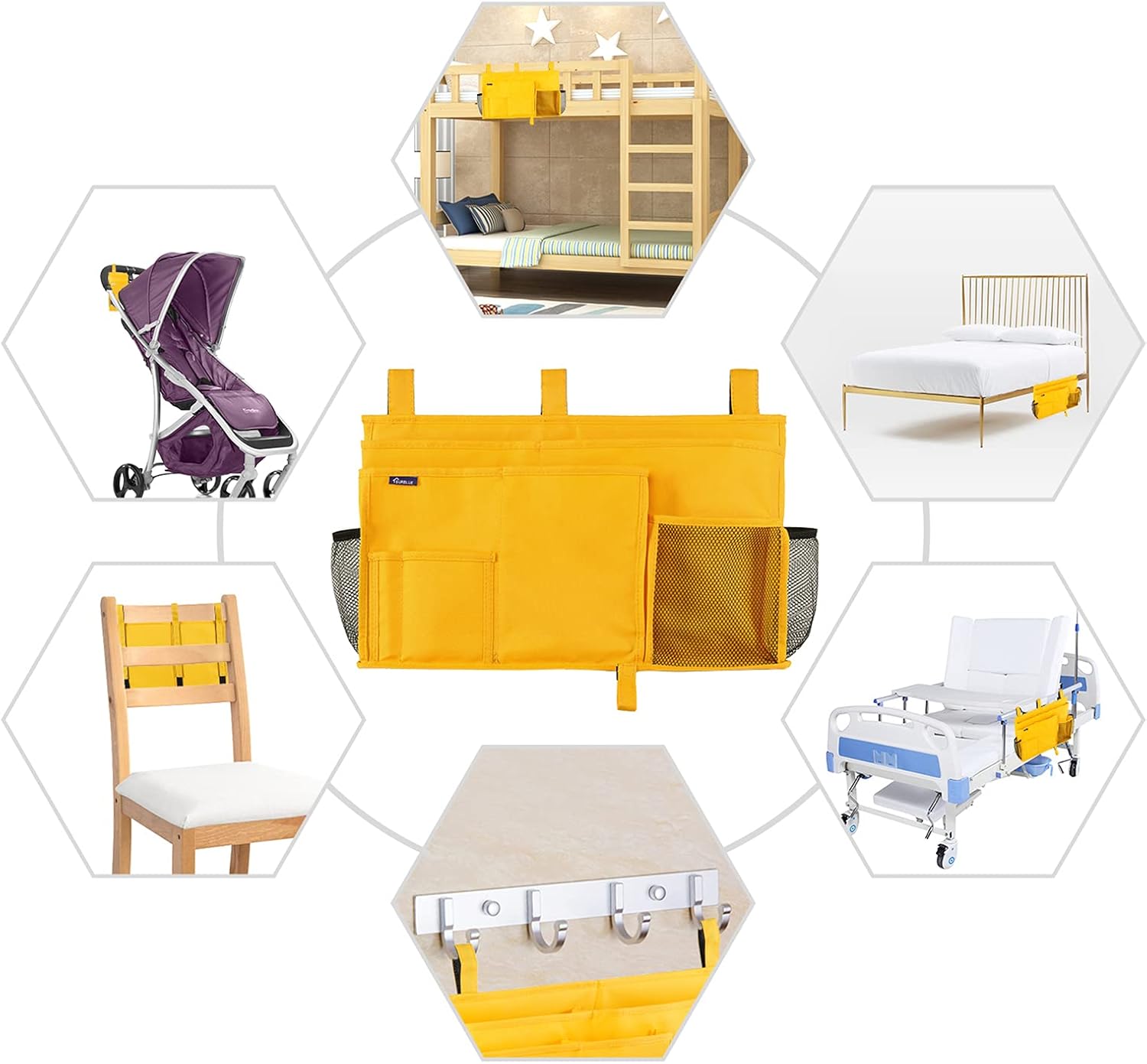 - Multi-Purpose: The bedside organizer is suitable for kid beds, top bunk beds, chair arms, and baby strollers, a good choice for RV, home, hospital, living room, or college dorm.