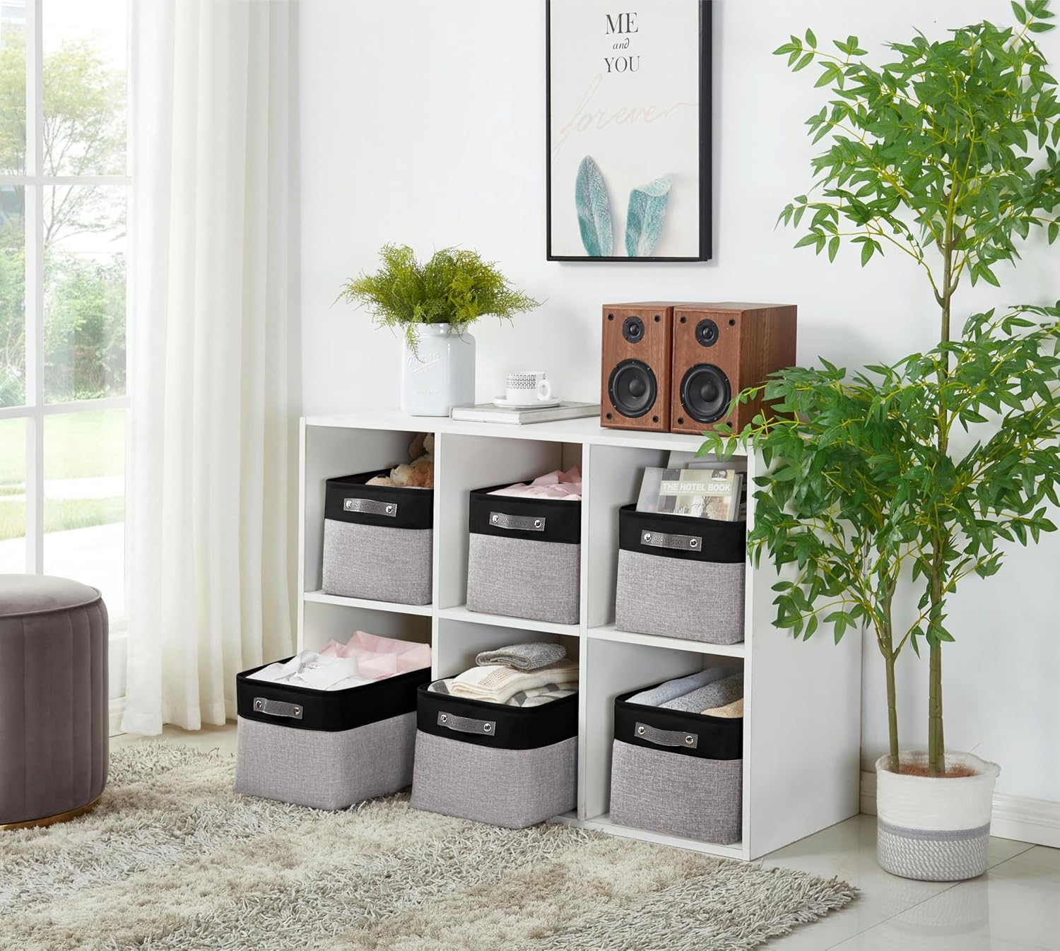 DECOMOMO Storage Baskets for Shelves - Fabric Closet Organizers and Storage Bins, Perfect Baskets for Organizing Closet Toys Nursery (Grey and Black, XL - 3 Pack)