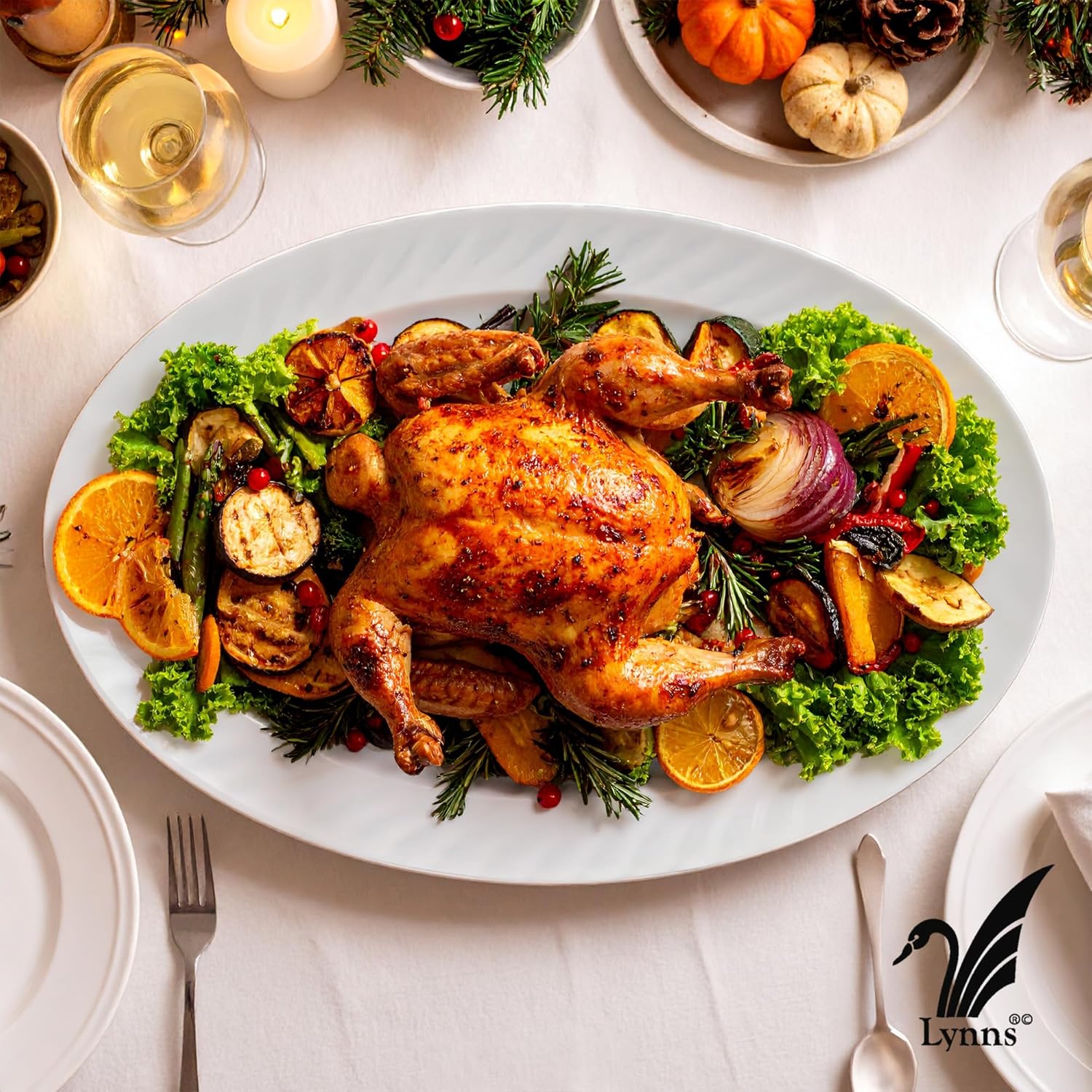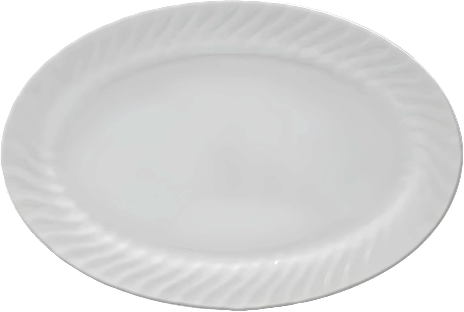 Lynns Paradise Imperial White 14-Inch Oval Platter, Set of 2, White; Heavy Duty; Chip Resistant; Lead and Cadmium Free; Freezer to Oven Safe up to 500°F