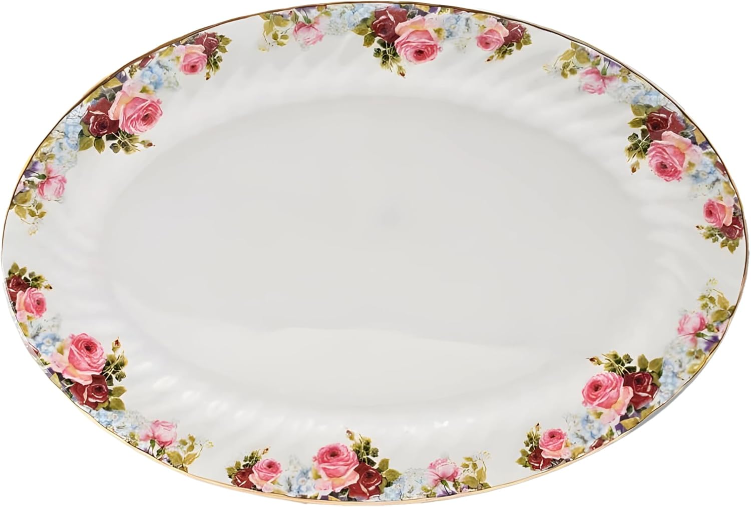 Lynns Paradise Philomena 14-Inch Oval Platter, Set of 2, Pink; Heavy Duty; Chip Resistant; Lead and Cadmium Free; Freezer to Oven Safe up to 500°F