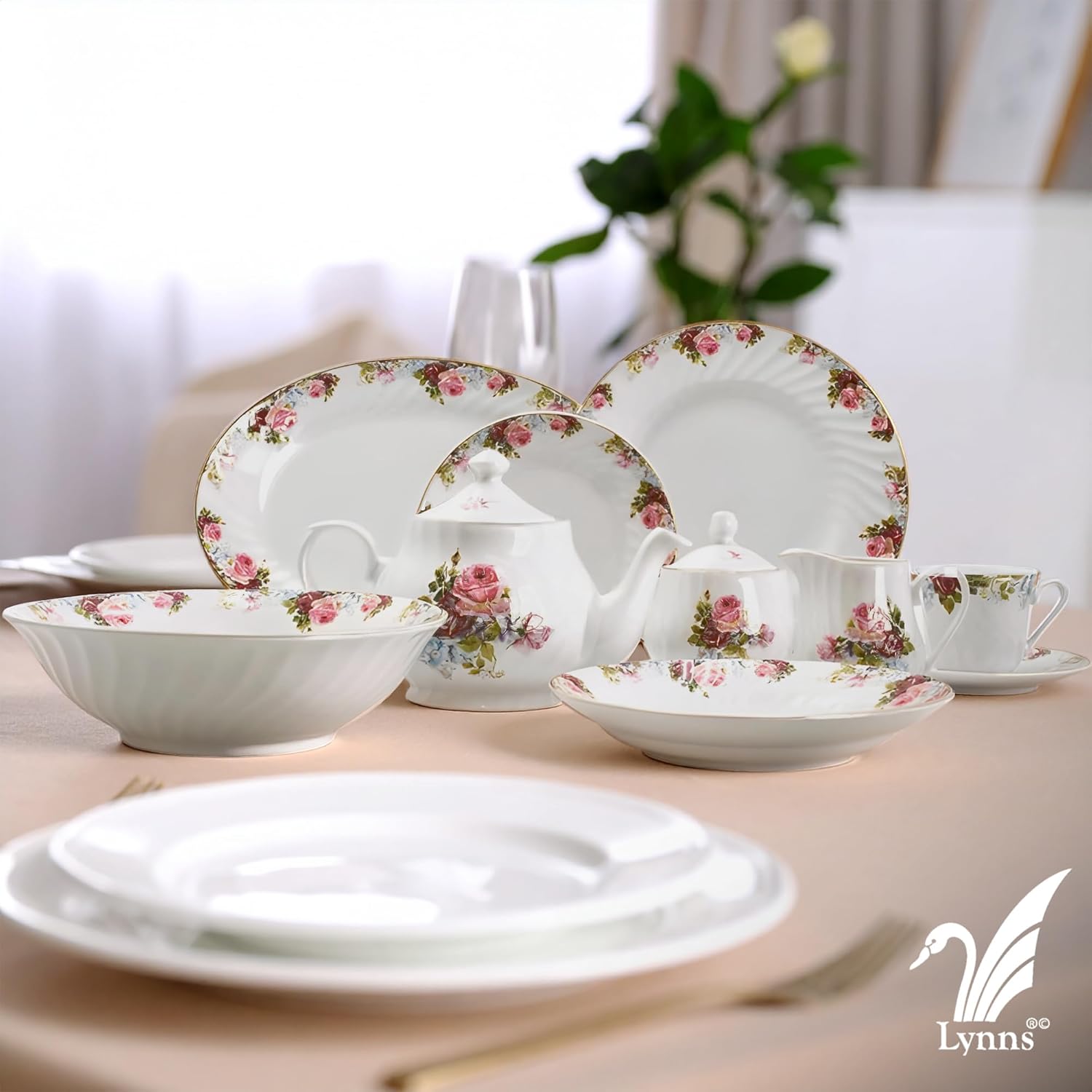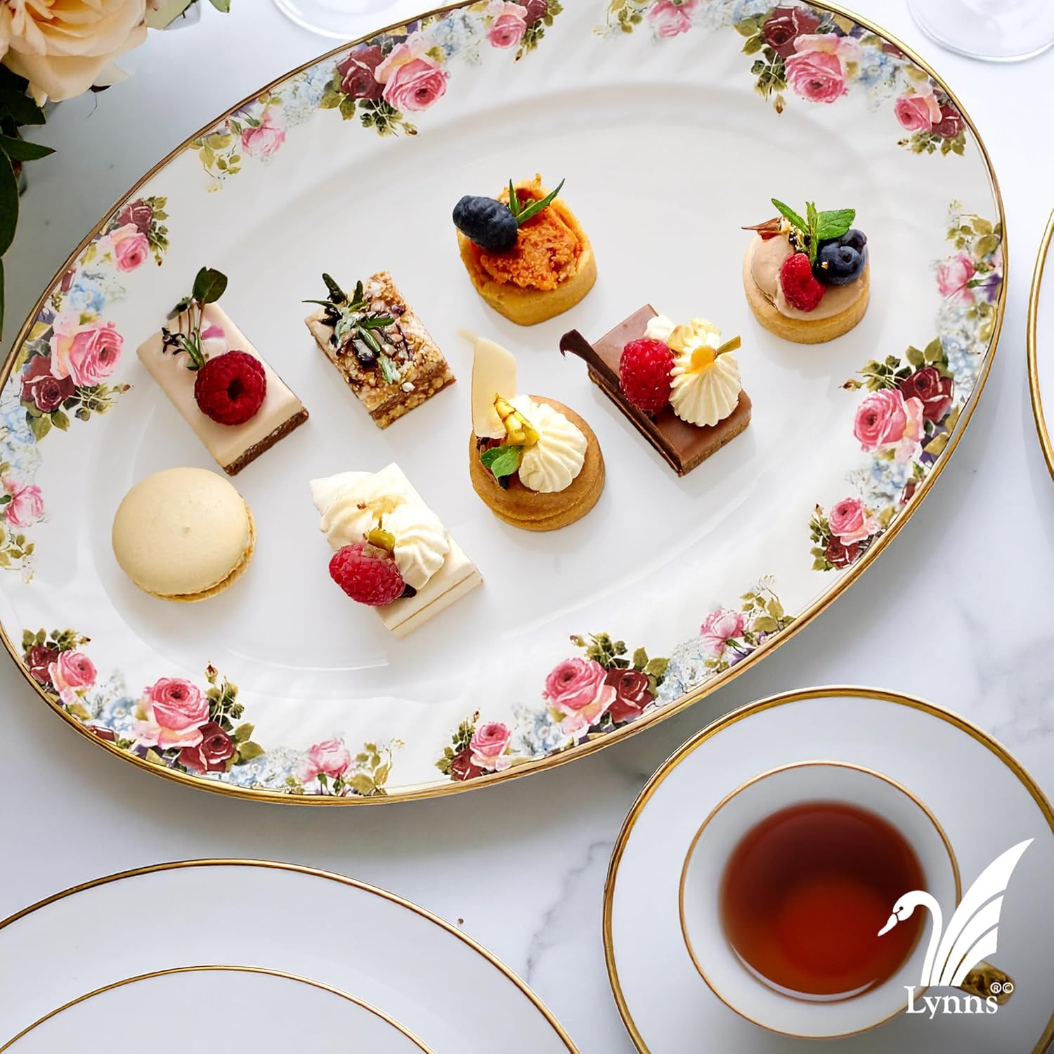 - 24k Gold Trim adorns each piece