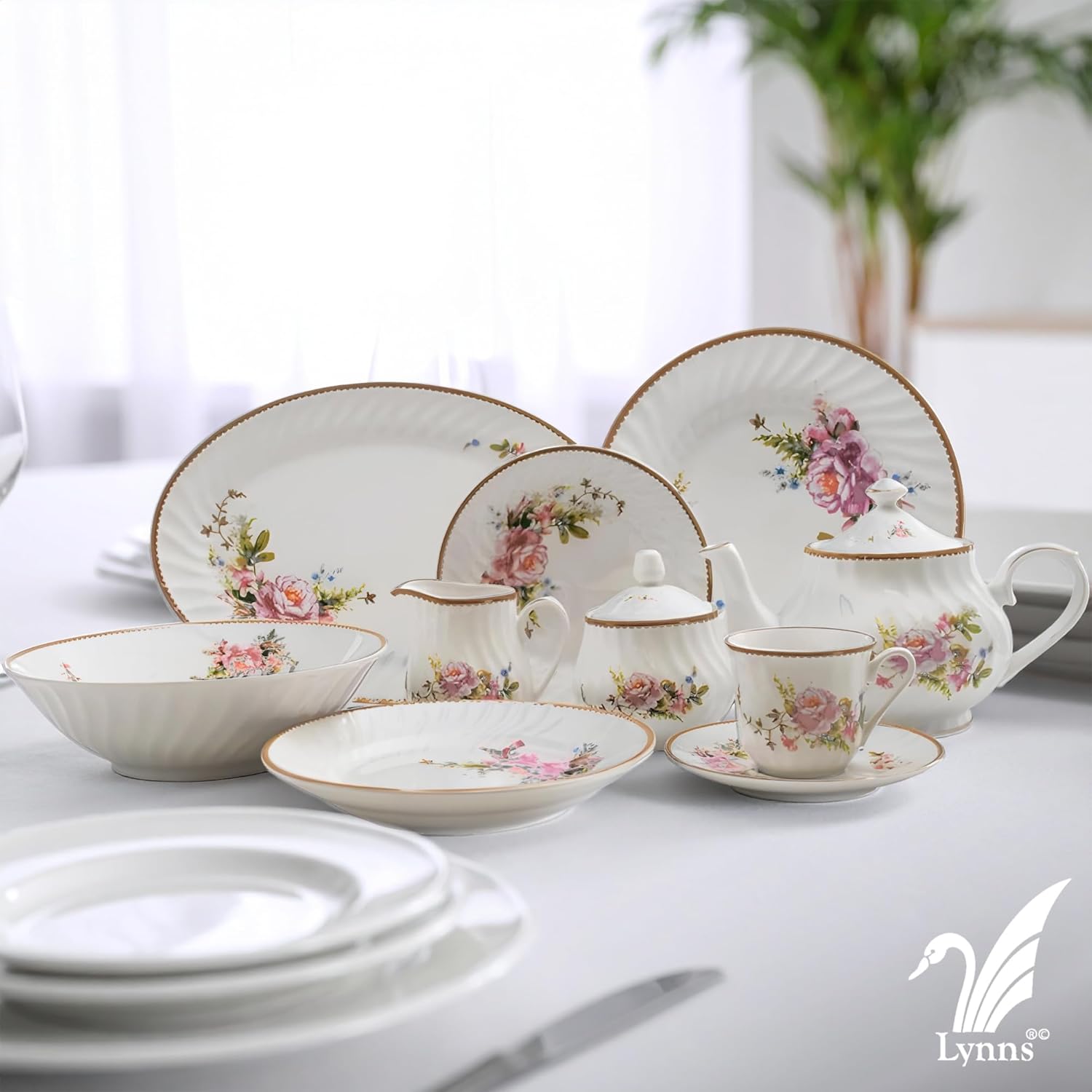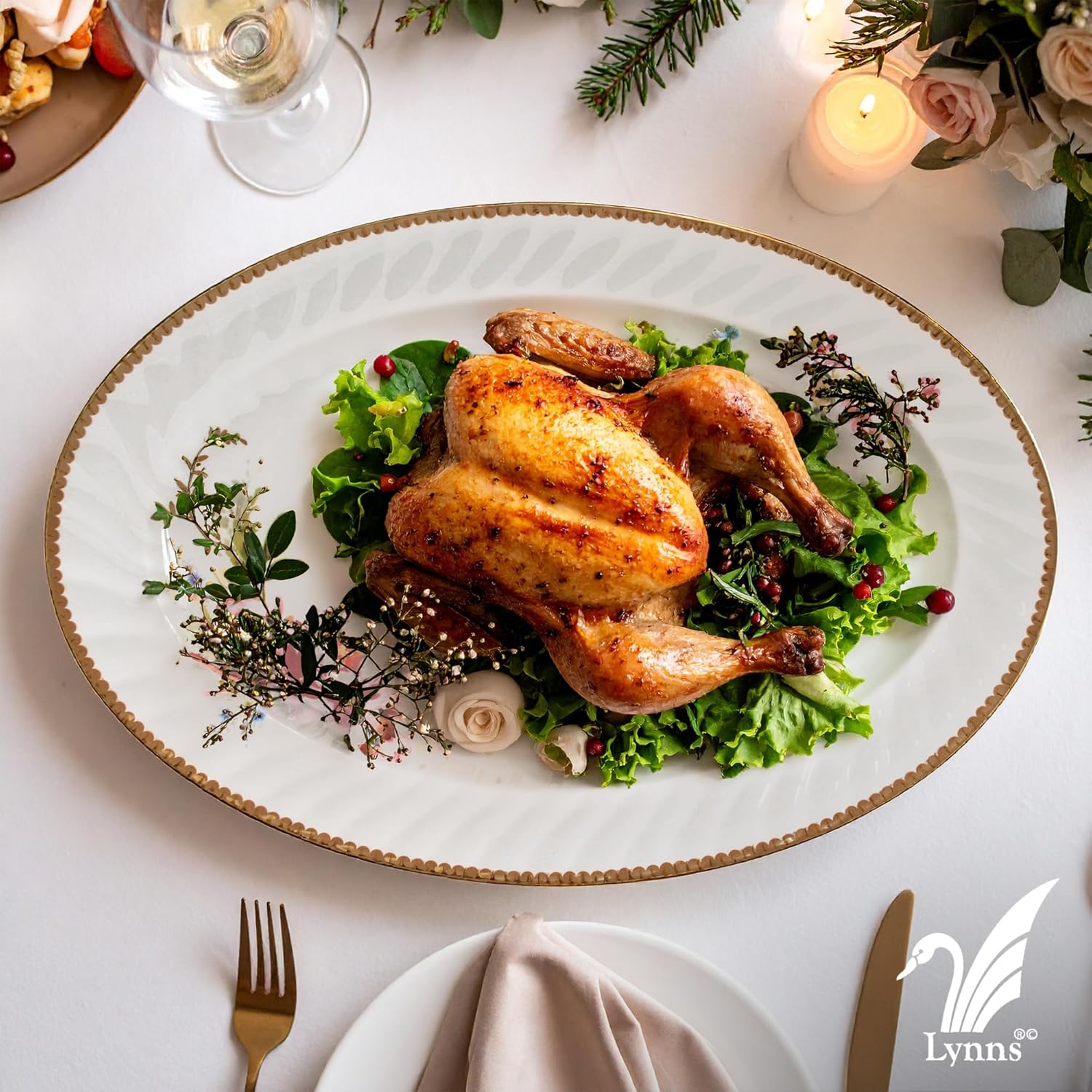 Lynns Paradise Timeless Rose 14-Inch Oval Platter, Set of 2, Pink; Heavy Duty; Chip Resistant; Lead and Cadmium Free; Freezer to Oven Safe up to 500°F