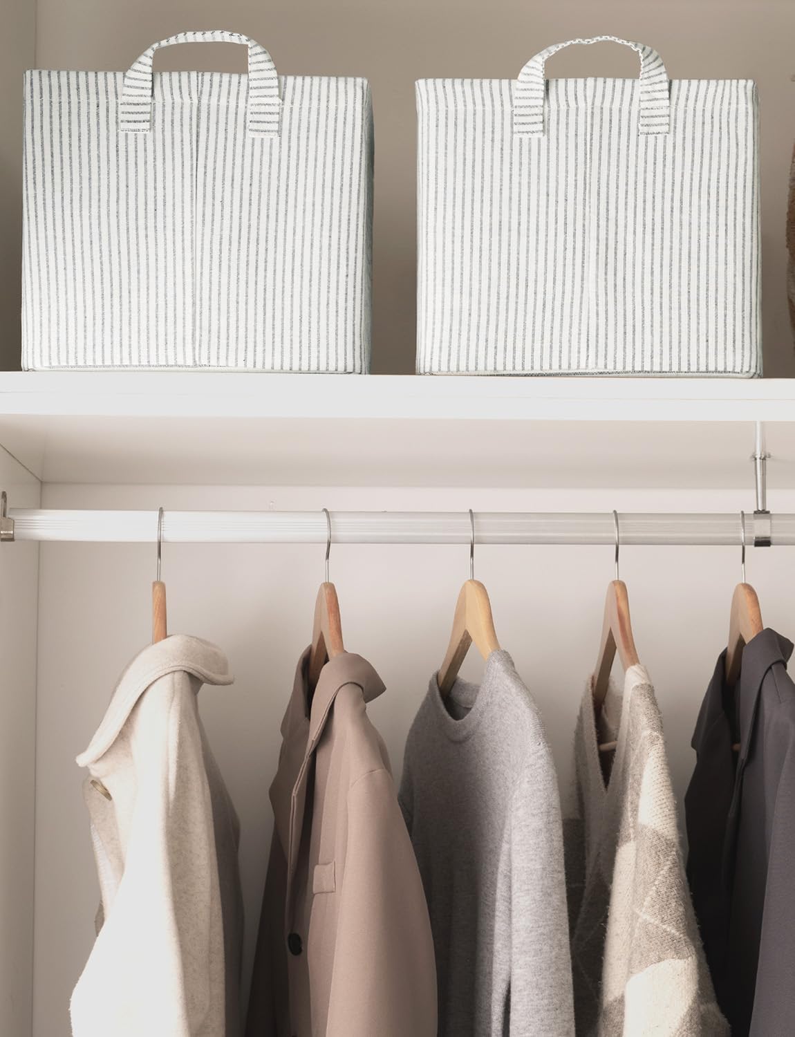 StorageWorks Storage Bins, Fabric Storage Bins for Shelves, Large Storage Baskets with Metal Frame, Closet Baskets and Bins with Handles, Gray and White Stripes, 2-Pack