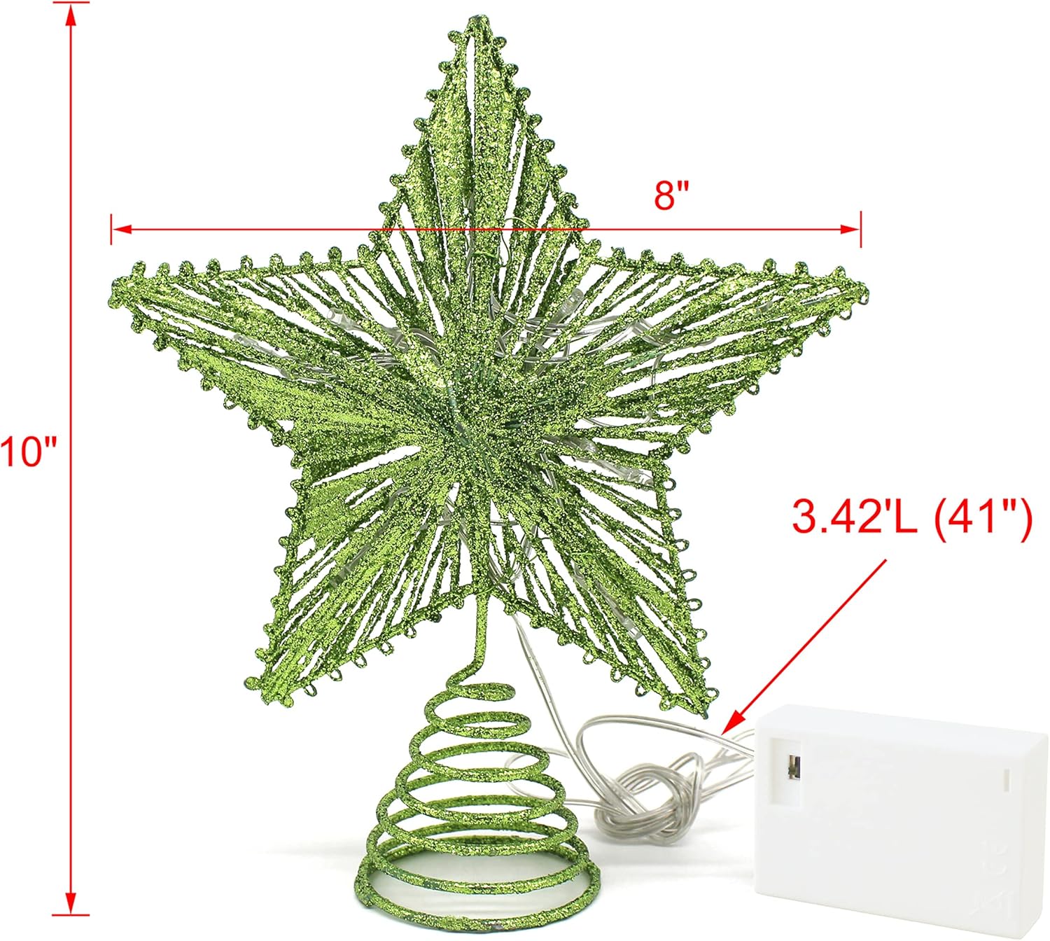- Measures is 8" X 2-3/4" X 10"H, the wire is 3.42'L (41"), 3D star, solid batteries box with flexible switch, New Upgrades design