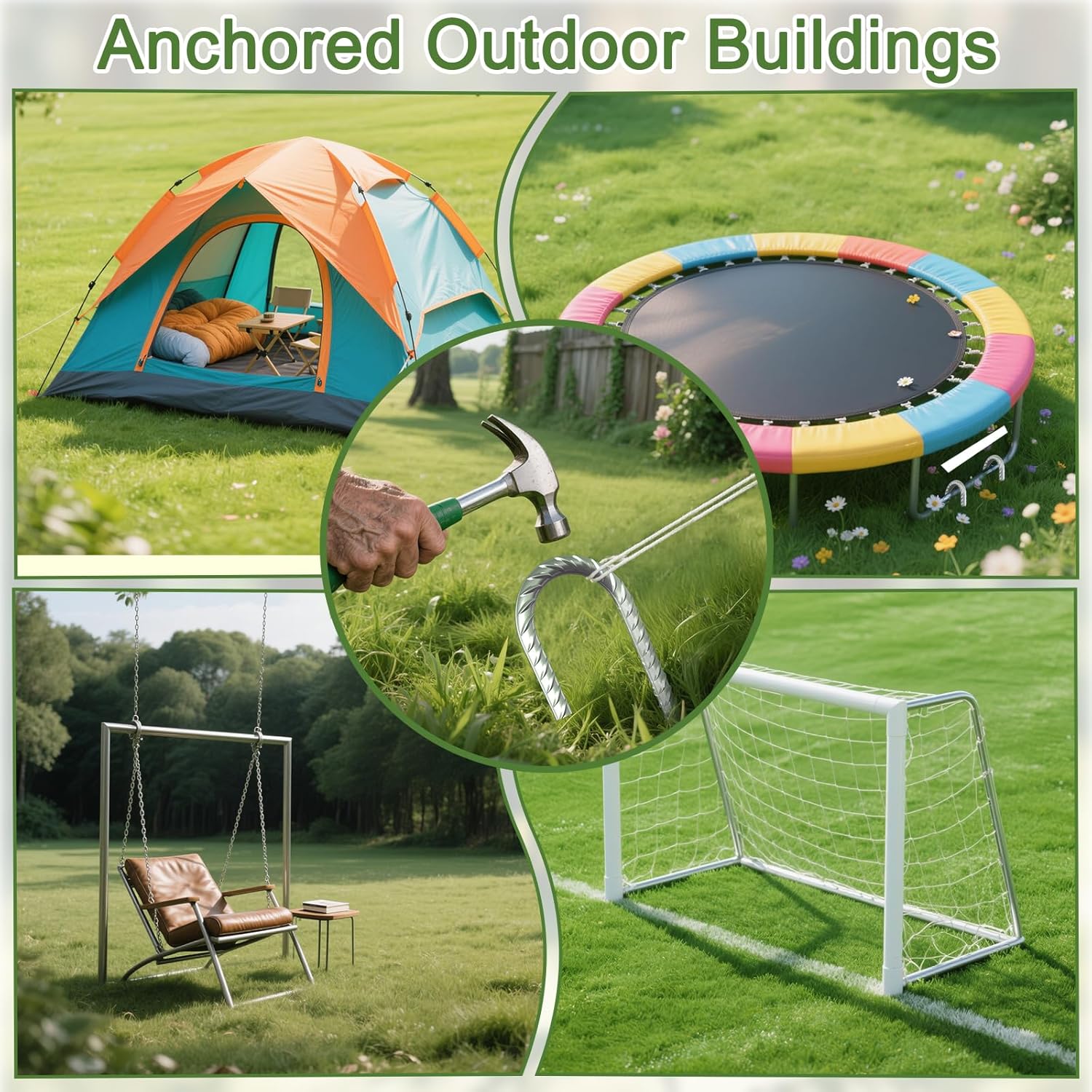 - Heavy duty:Bold ground stakes are more stable than small fence stakes, can survive in windy weather, have a firmer grip , not easy to loosen, ideal metal stakes for Trampoline