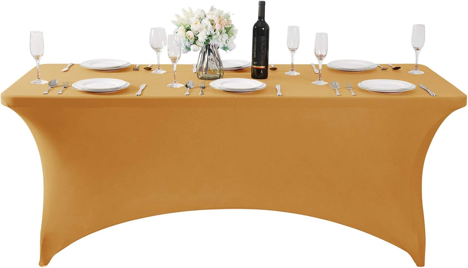 Spandex Table Cover for 6Ft or 4fT or 8ft Table Universal Fitted Stretch Tablecloth for Party, Banquet, Wedding and Events-Gold