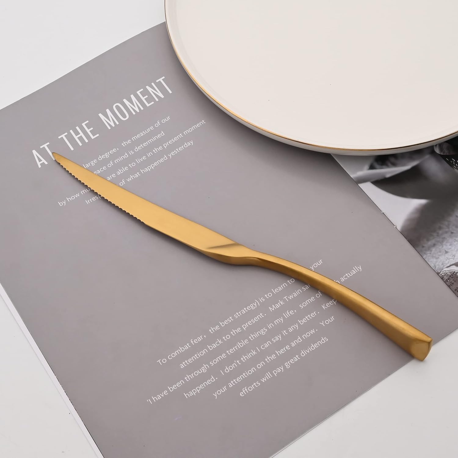 - MATTE FLATWARE SET 6 PIECES: Dinner Knife, Steak Knife, Dinner Spoon, Dinner Fork,Dessert Spoon, Salad Fork.