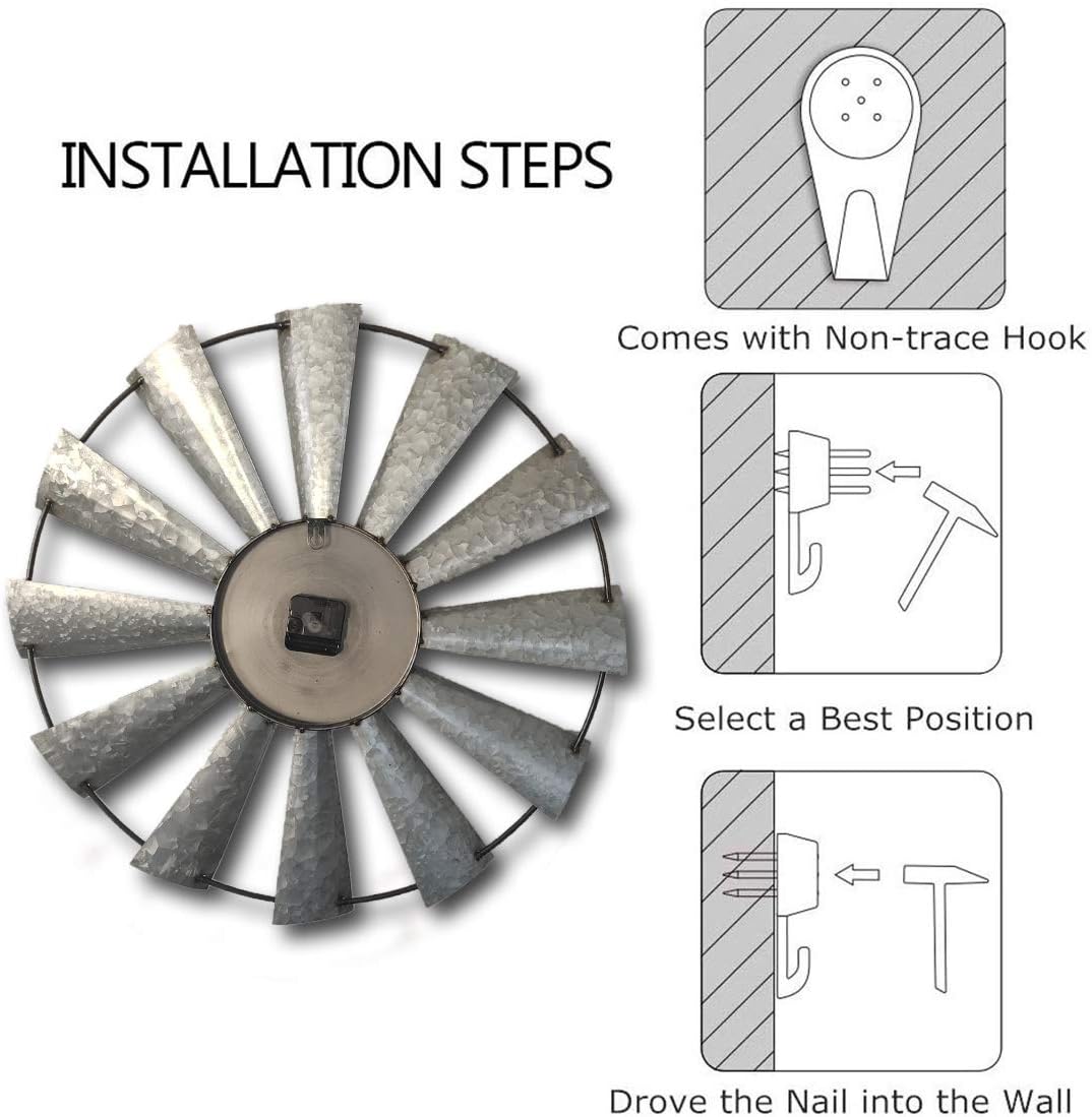 Mrocioa 24inch Windmill Distressed Metal Wall Clocks Rustic Large Decorative Clock Oversized Farmhouse Decor,Non Ticking,Battery Operated