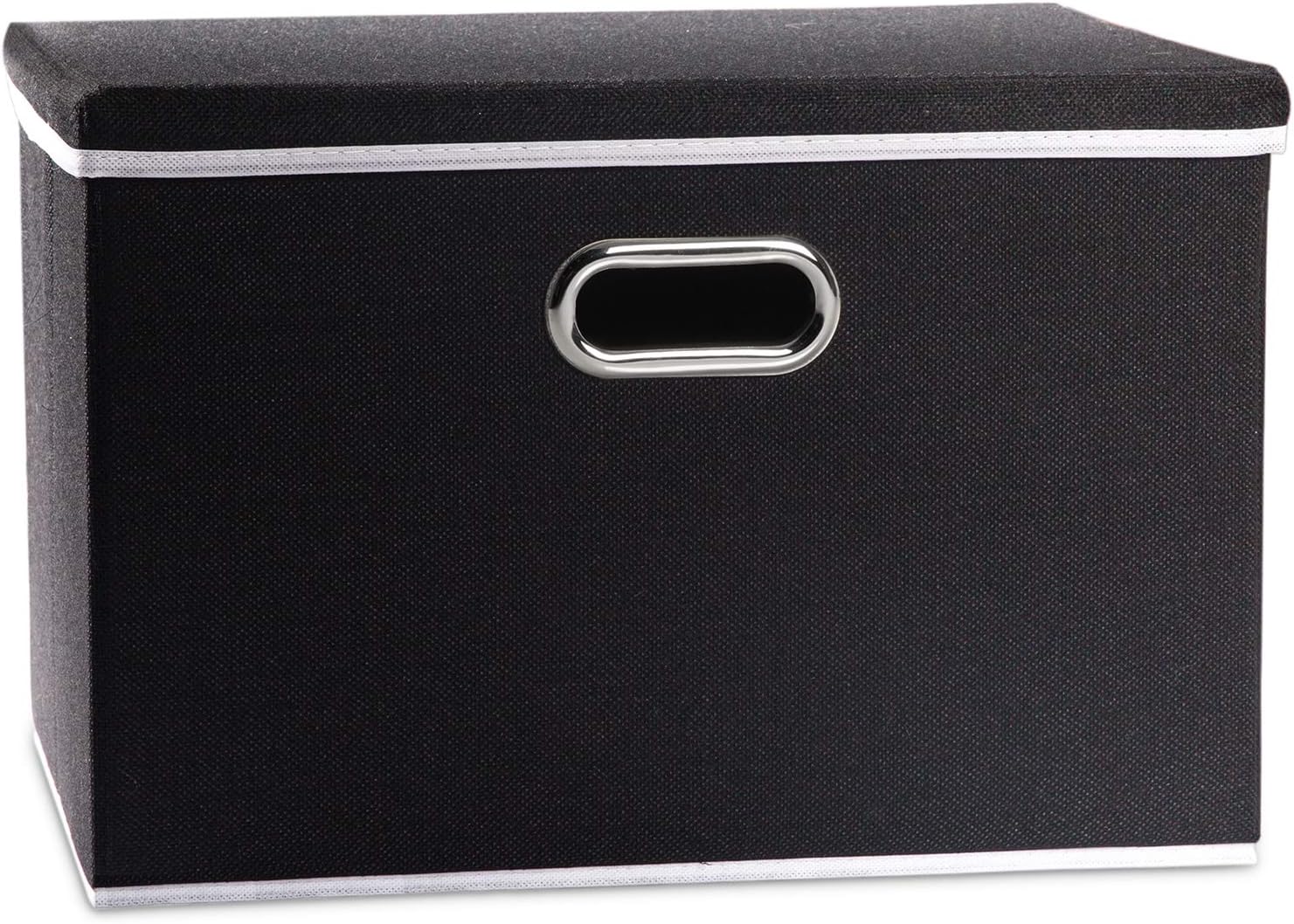 PRANDOM Large Foldable Storage Box with Lid [1-Pack] Fabric Collapsible Storage Bin Organizer Container Basket Cube with Cover for Home Bedroom Closet Office Nursery Black (17.7x11.8x11.8)