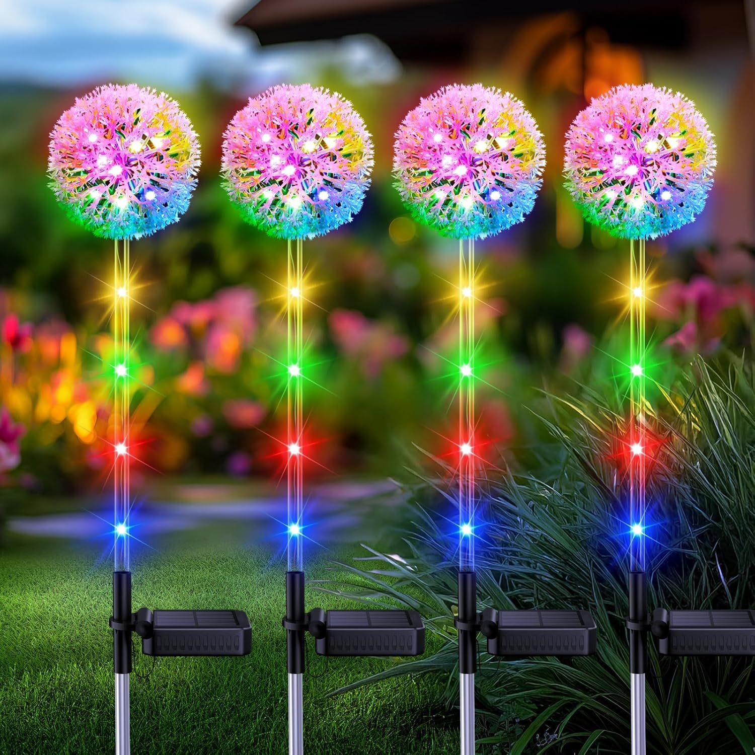 Solar Garden Lights Outdoor Decorations: 4 Pack Dandelion Flower Lights, 2 Modes Colorful 16 LED Landscape Light, Waterproof Artificial Flowers for Yard, Patio, Pathway Decor, Gifts for Women Mom