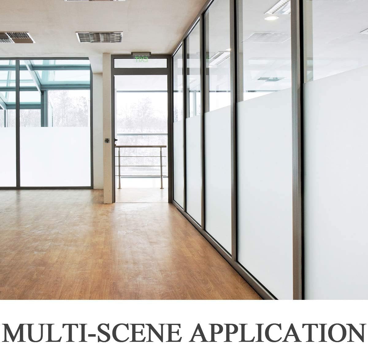 - GREAT PRIVACY PROTECTION:This frosted glass film is opaque and gives up to 95% privacy day and night. You will not see any shape on the other side unless maybe it was within 1 inch of the glass. It also diffuses light well and can brighten a room.