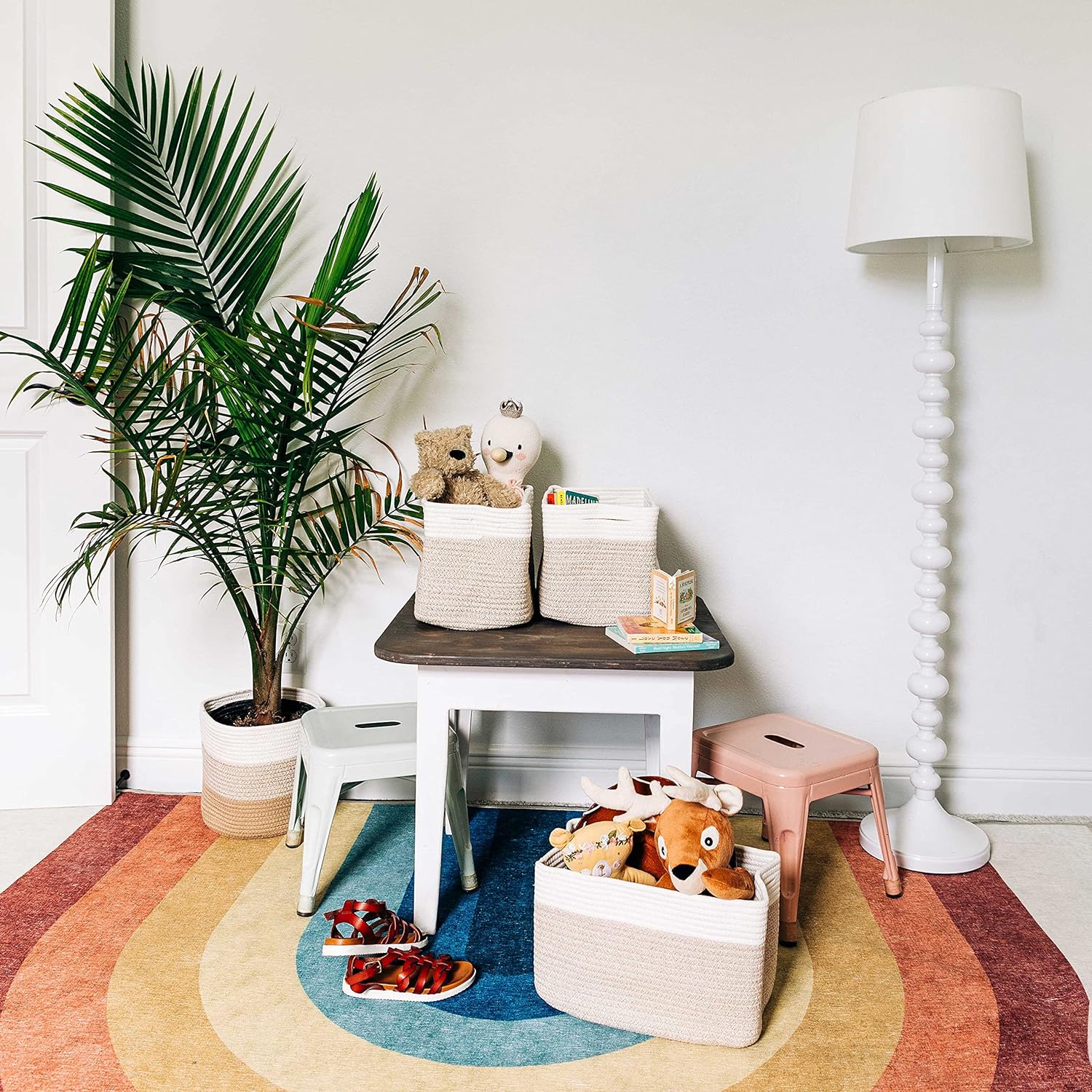 - Discrete, Built-In Carry Handles – These fabric rope baskets for storage also feature slim hand holds built right into the sides of each round basket for a seamless look that’s also functional. Perfect for picking up toys or carrying items around the house.