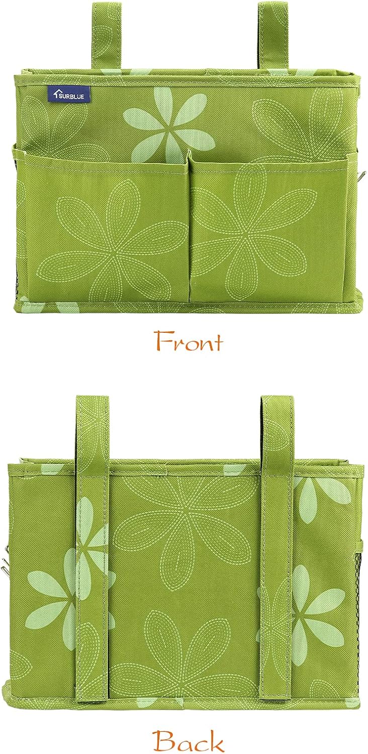 Surblue Bedside Caddy Hanging Bed Organizer Storage Bag Pocket for Bunk and Hospital Beds, College Dorm Rooms Baby Bed Rails,Camp Chiars,Wheelchair Side Bag,4 Pockets and 2 Hooks (Flower)
