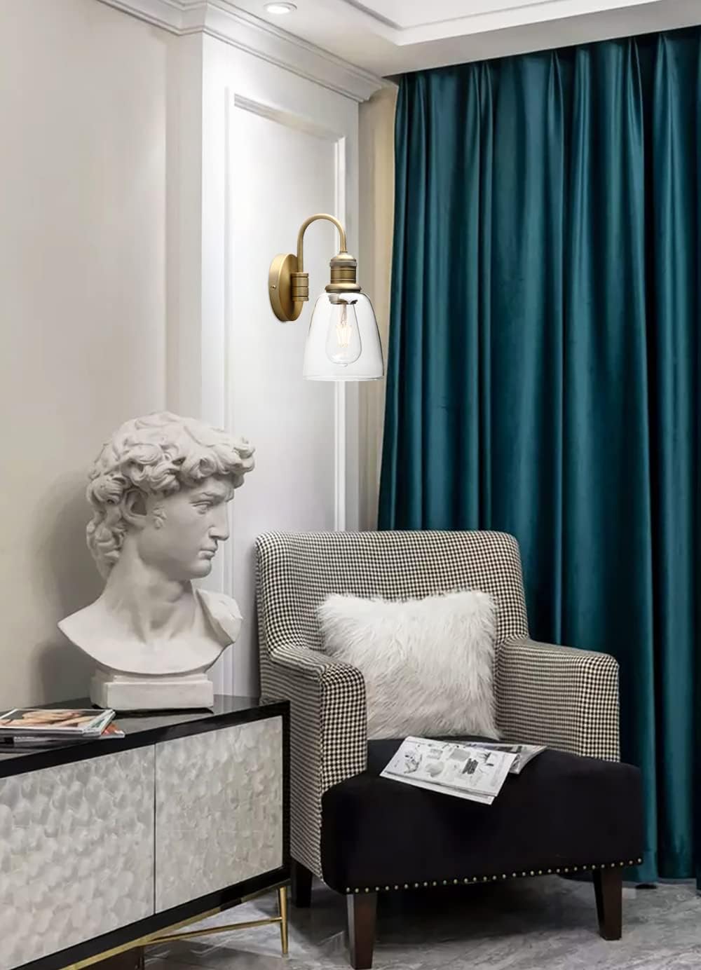 Yosoan 1-Light Brass Modern Vintage Indoor Wall Sconce, Vanity Single Luxury Hardwired Retro Textured Clear Oval Cone Glass Shade with Industrial Gooseneck Curved Rod Bathroom Lamp(Antique)