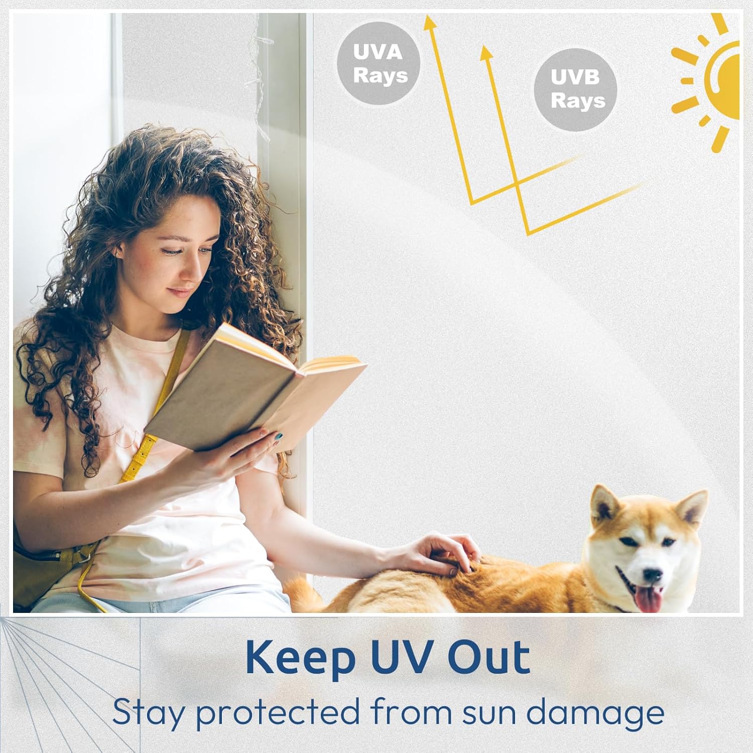 - UV Defense & Glare Reduction: rabbitgoo frosted window film effectively blocks 84% of UVA and 99% of UVB rays, shielding you from the sun's intense glare. Safeguard your skin and preserve the color of your furnishings with this essential home upgrade