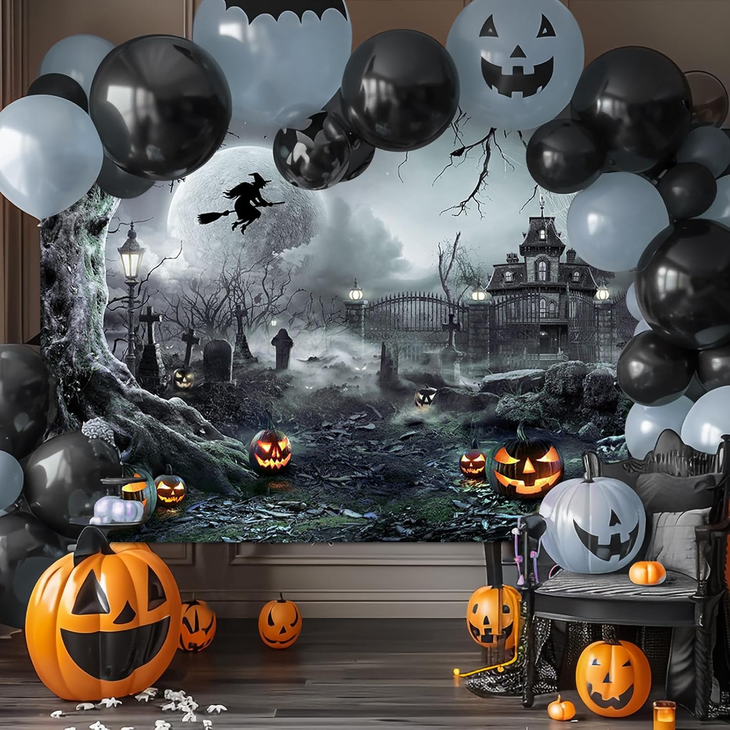 - Proper Size: The Halloween photography backdrop size is 7x5 ft (width: 84 inches, height: 60 inches), foldable for shipping; The size is large enough to be paired with holiday related balloons, garland kit, props, and tablecloths to create a perfect party