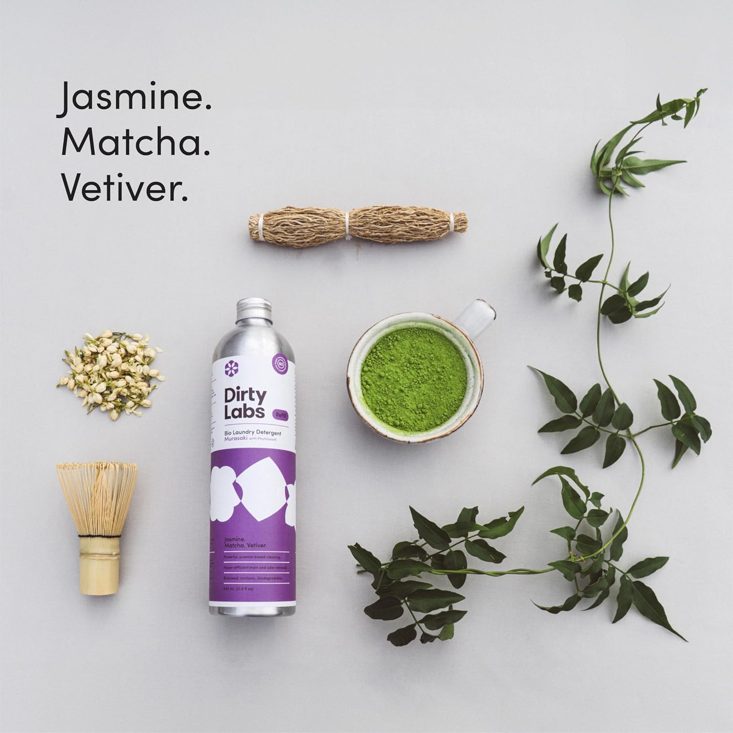 - SPECS: 21.6 fl oz = 80 loads. Murasaki Scent (Jasmine, Matcha, & Vetiver). Compatible with traditional and HE washers. Optimized for cold water. Certified EPA Safer Choice. No sulfates, dyes, parabens, preservatives, chlorine bleach, or CA Prop.65 Chemicals. Visit our store for more ingredients information.