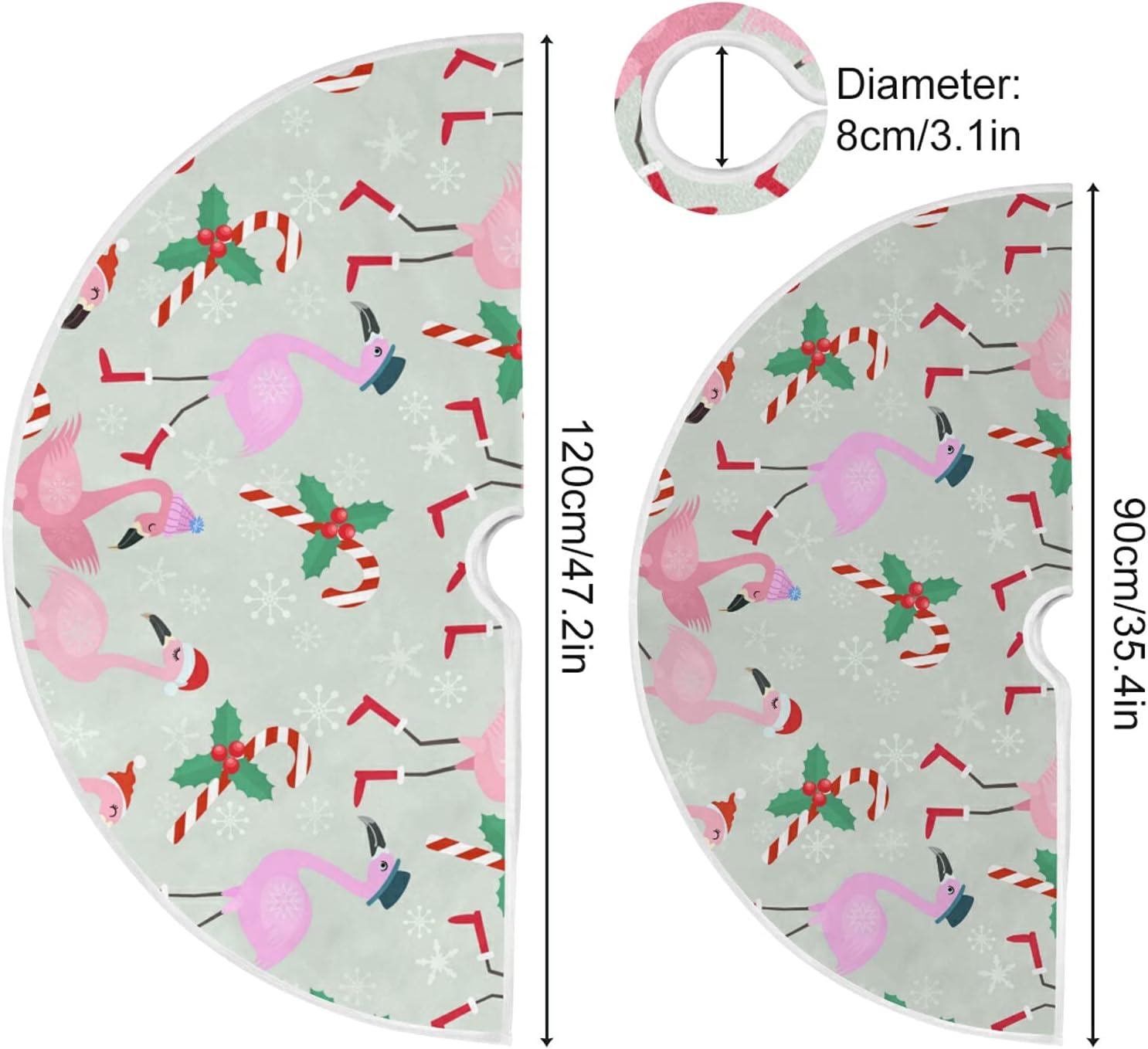 Christmas Flamingo Candy Tree Skirt, Seasonal Tree Mat Holiday Party Supplies Ornaments Indoor Outdoor Decorations for Tabletop Trees 47.2 Inches