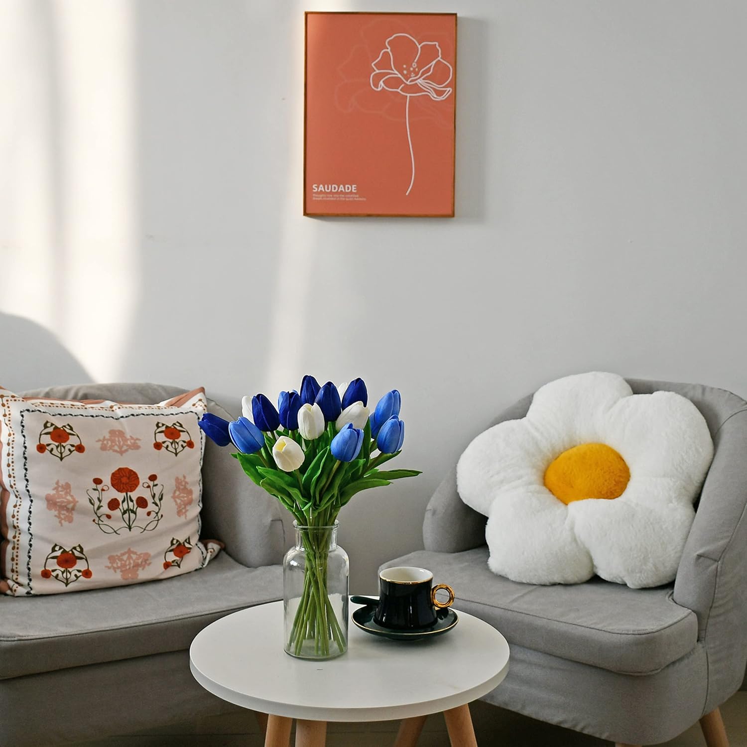 Mandy's Artificial Tulips 20 Stems Shades of Blue PU Faux Flowers for Wedding Home Decor 13.5 Inch
