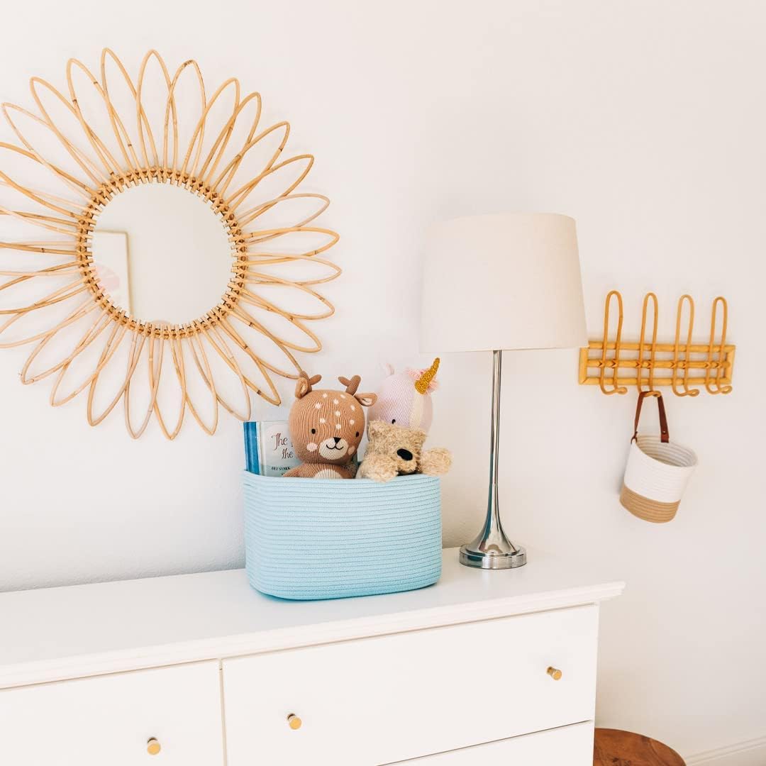 - Premium Cotton Rope Weave – These beautiful rainbow toy baskets are woven with high-quality, all-natural cotton to give them the right balance of softness and durability. This makes them great for bedrooms, nurseries, and laundry rooms as rainbow room decor.