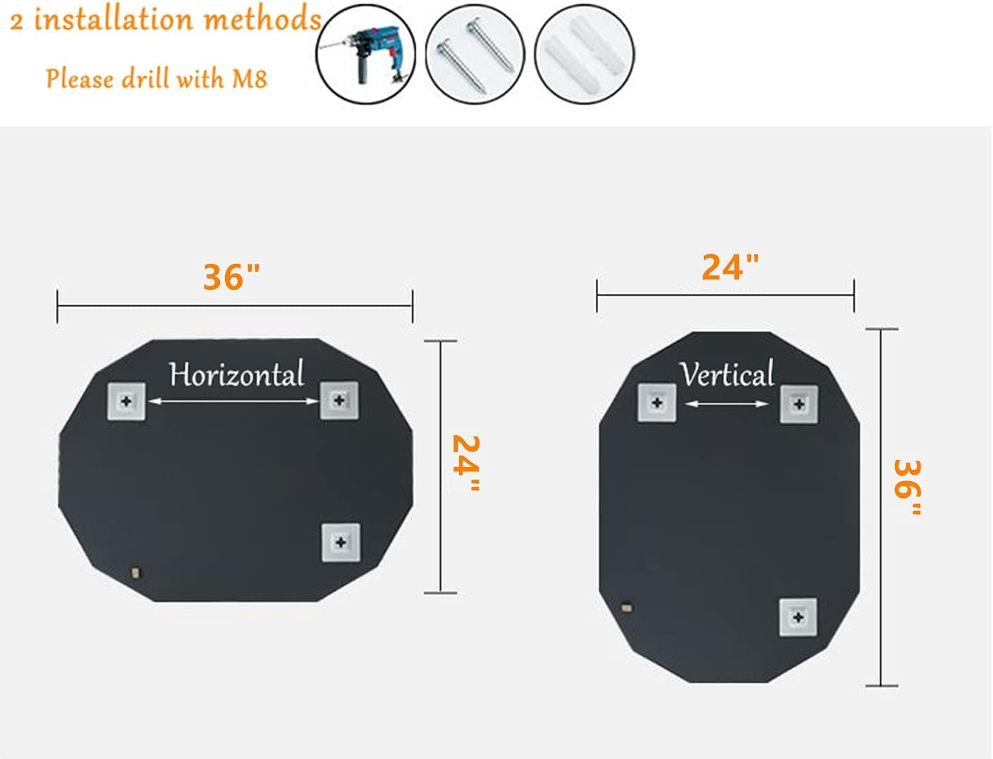 - Copper-free silver mirror, environmentally friendly, much less corrosion rate compared with normal silver mirrors used by most brands, hanging both horizontally and vertically