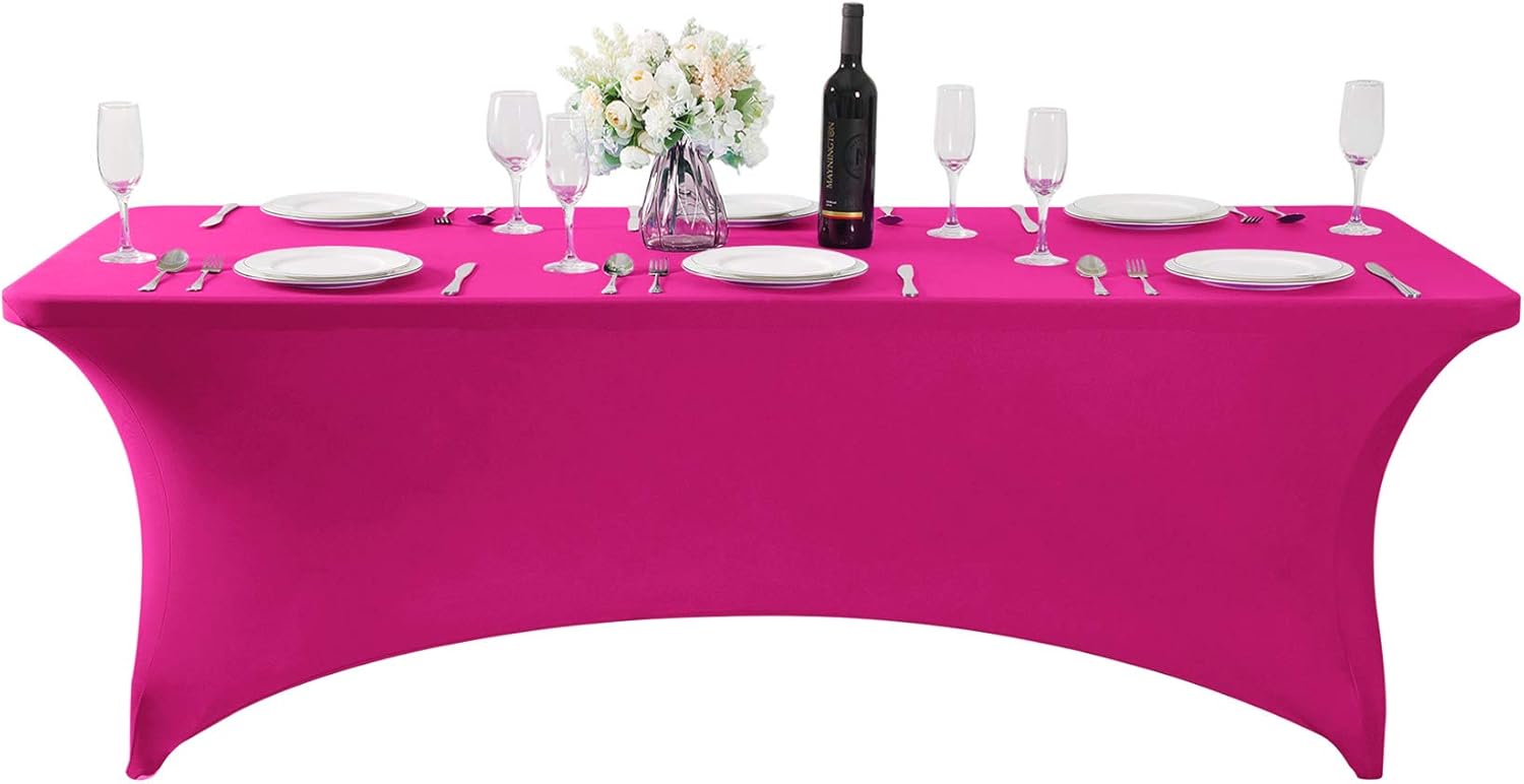2Pack Spandex Table Cover for 8FT or 4ft or 6ft Table Universal Fitted Stretch Tablecloth for Party, Banquet, Wedding and Events-Fuchsia