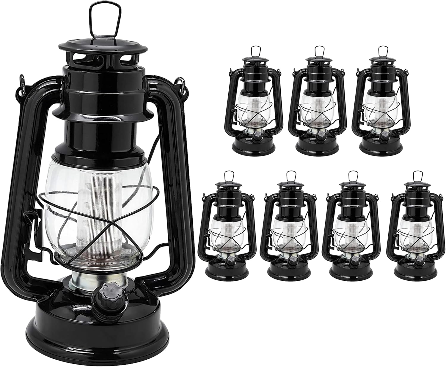 YAKii LED Vintage Lantern Metal Hanging Hurricane Lantern 12 LED Dimmer Switch Cold White Battery Operated Power Outage Indoor Camping Lighting Outdoor Brooklyn Decoration (Black Pack of 8)