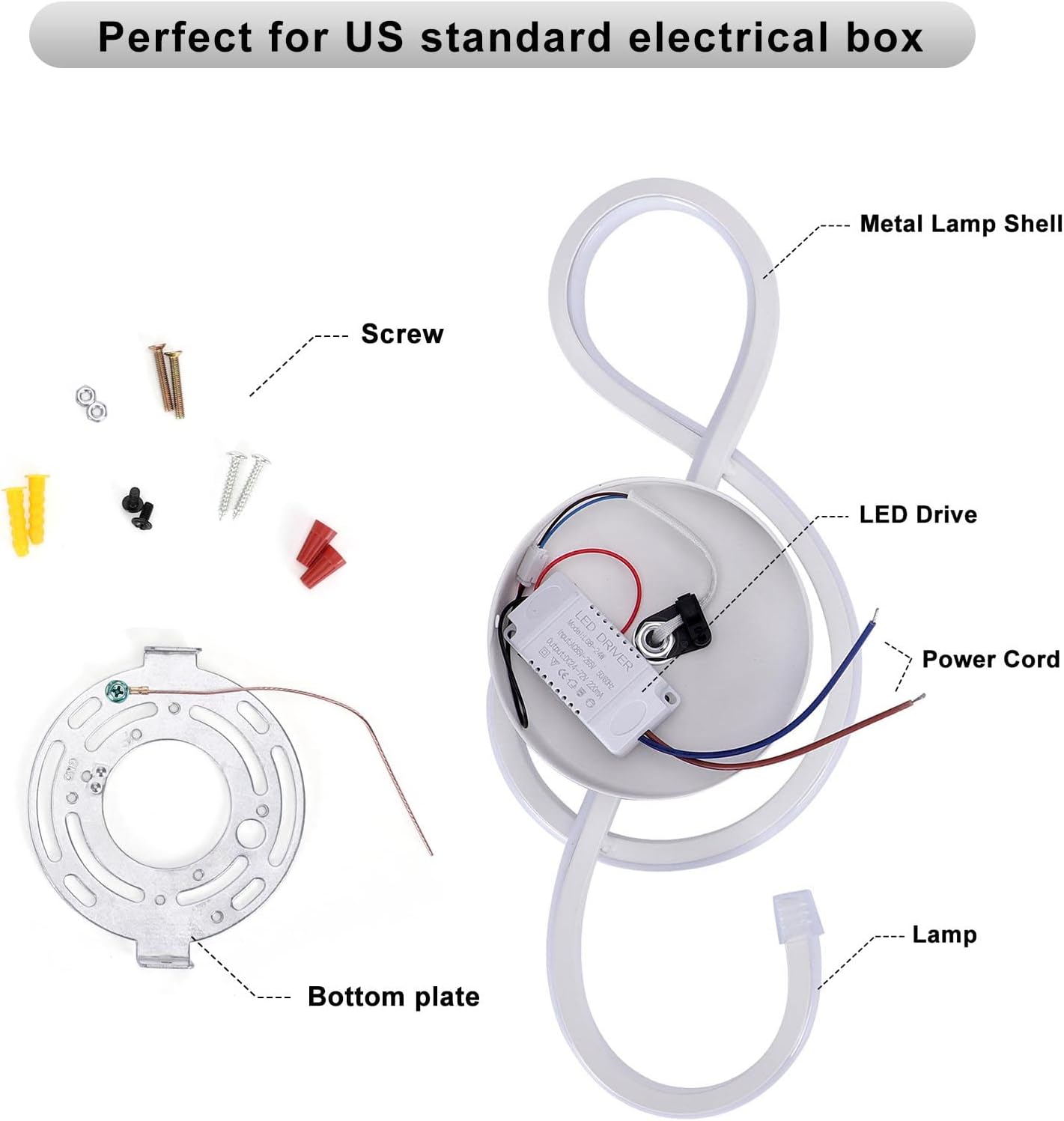 - [Modern Design] The shape of the musical symbol is fitted with a base suitable for American junction boxes, timeless minimalist design that perfect combination with modern, urban, minimalist and other decoration styles for the living room and bedroom.