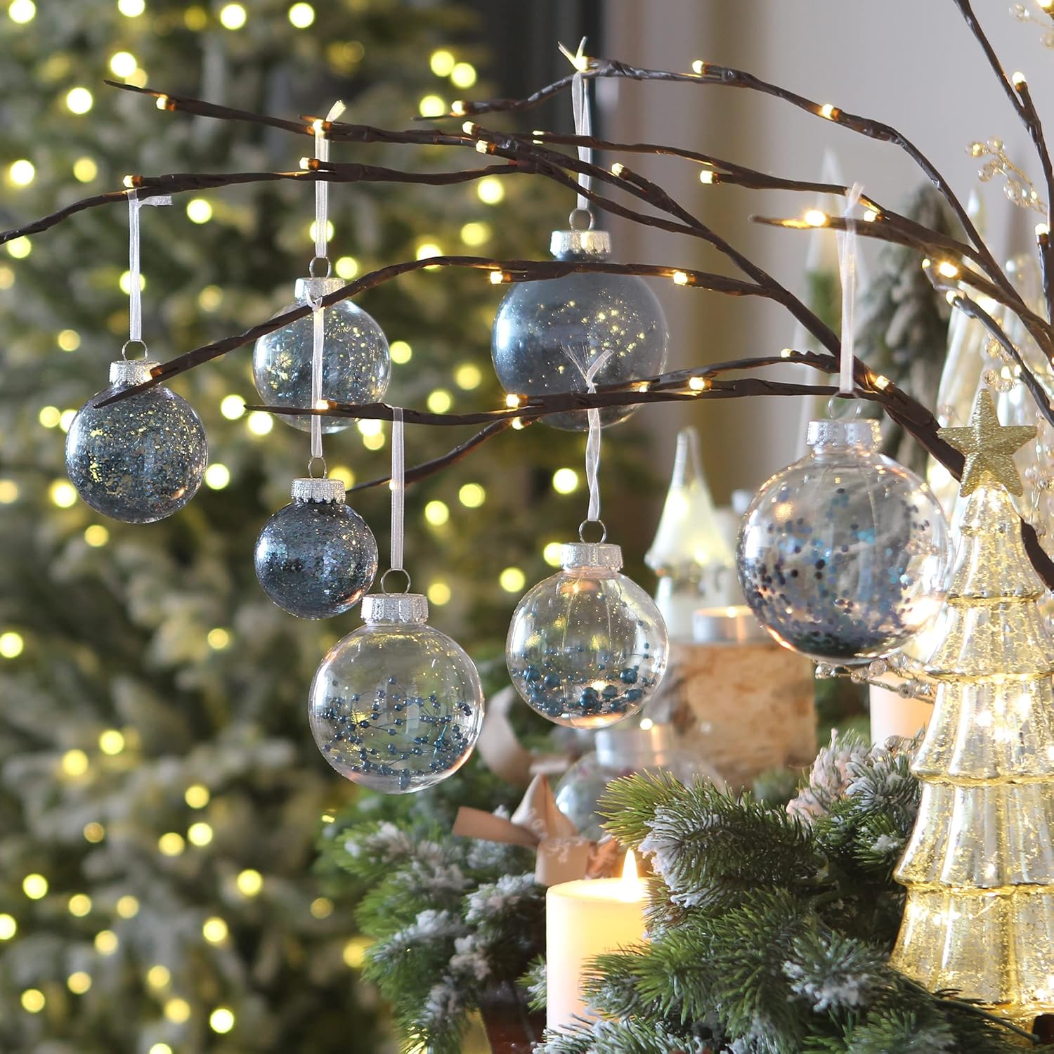 - TRANSPARENT & SPARKLING - These Christmas ball ornaments feature clear glaze base with sparkling decorations like glitter, sequins, tinsel and beads to provide a stunning shimmering look in the light. They will be perfect for decorating your home and become part of your holiday tradition