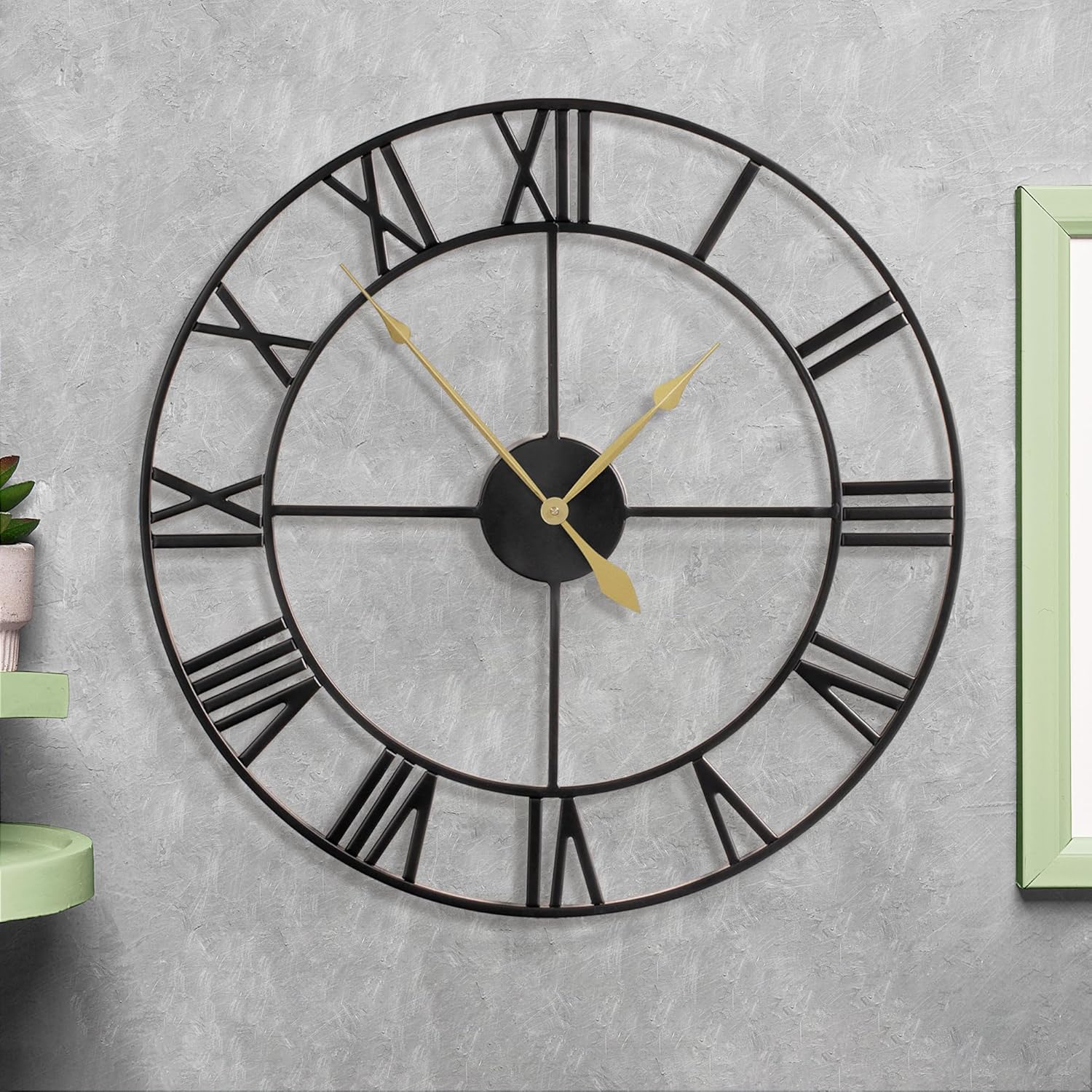 - 【INDUSTRIAL CLOCK】Large retro metal clock in hollowed-out design, frame of the wall clock is hand-made by solid iron, and high- quality materials ensure the robustness and retro appearance of the Roman wall clock.