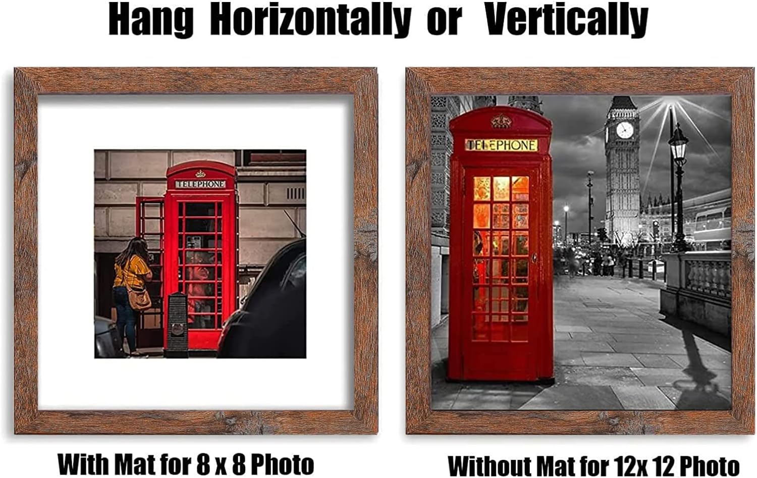 - 【READY TO HANG】Our 12X12 frame rustic brown includes hanger hooks to hang artwork or photographs easily, display horizontally or vertically to fit in for collage for wall and gallery wall frame set