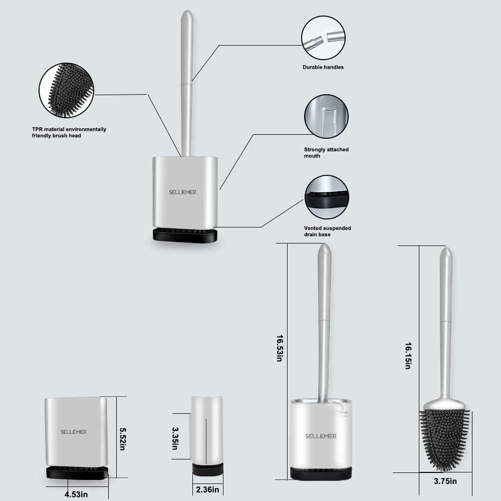 - No Hair Tangling Troubles: Larger bristles make it not easy to entangle hair and other dirty foreign objects. Getting rid of hair by simply rinsing the brush head. Save your time fixing cleaning problem and hair-tangling troubles. Instead of using plastic bristles, Sellemer Toilet Brush uses silicone bristles, which can keep toilet bowl from being scratched also