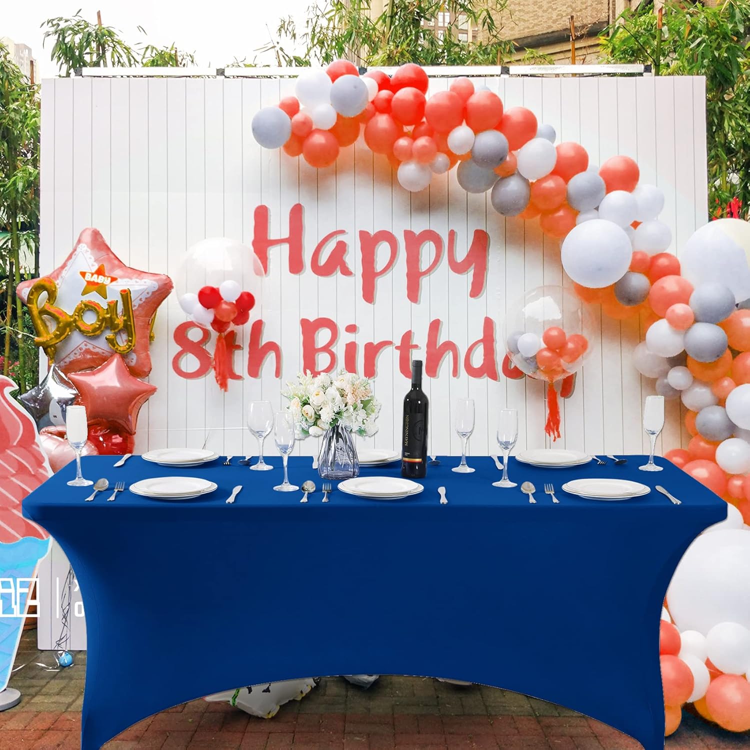 SuperO 2Pack Waterproof Spandex Table Cover for 8FT Table Universal Fitted Stretch Tablecloth for Party, Banquet, Wedding and Events-Classic Blue