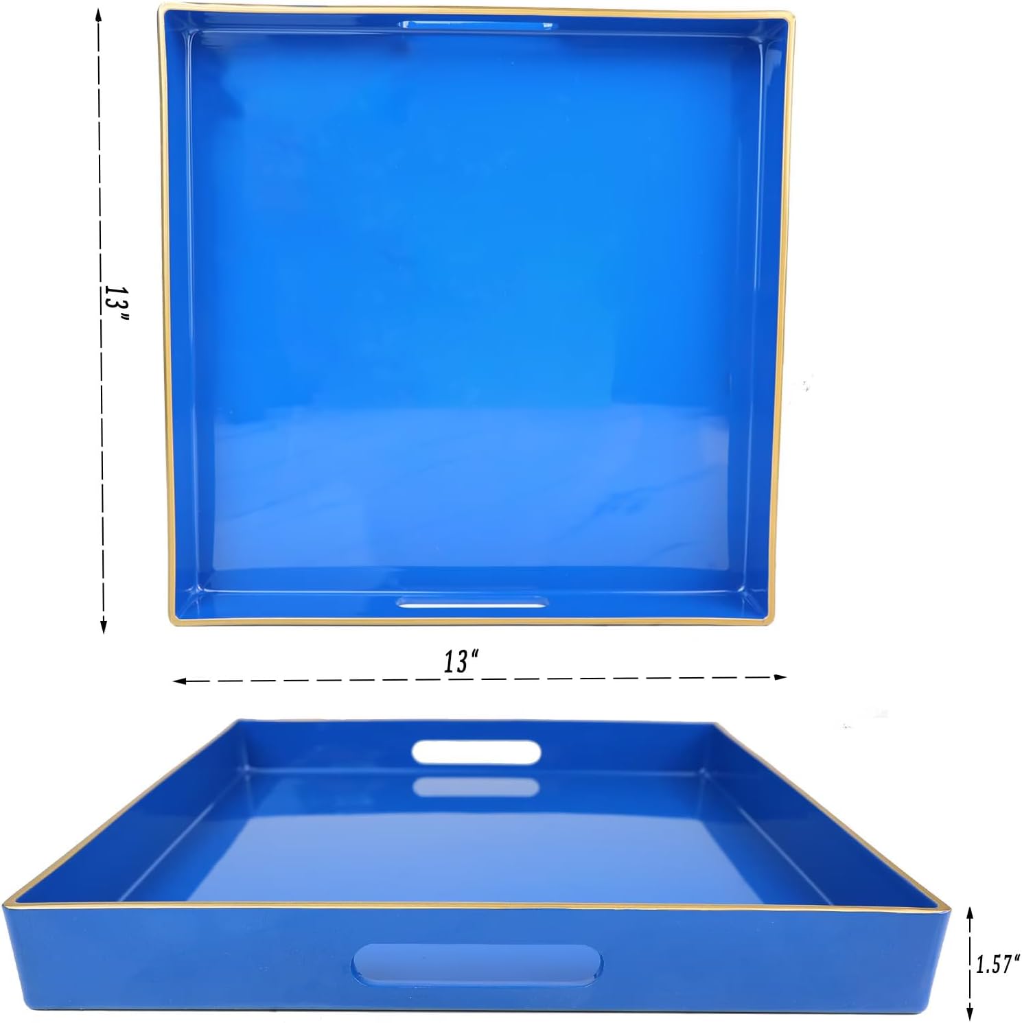 Spsyrine Blue Decorative Tray for Living Room, Square Modern Plastic Coffee Serving Table Tray for Ottoman Bathroom Kitchen,13"*13"